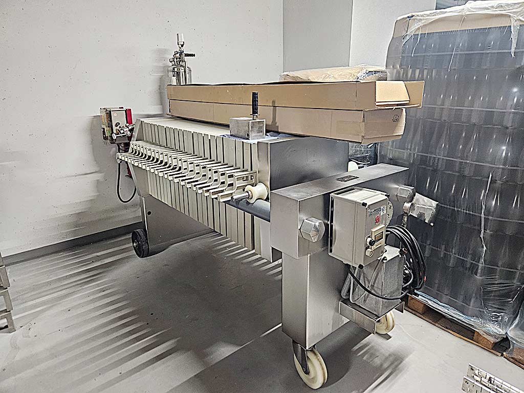 | Description Plate dimensions X/Y: 630mm/630mm, number of filter plates: 20, filter material: polypropylene, cake thickness: 25mm, max. filtration pressure: 12bar, filter area: approx. 12m², chamber volume: 160l. Machine dimensions X/Y/Z: approx. 2600mm/1200mm/1200mm, weight: approx. 1300kg. An on-site inspection is possible. |
