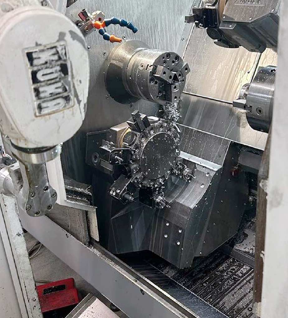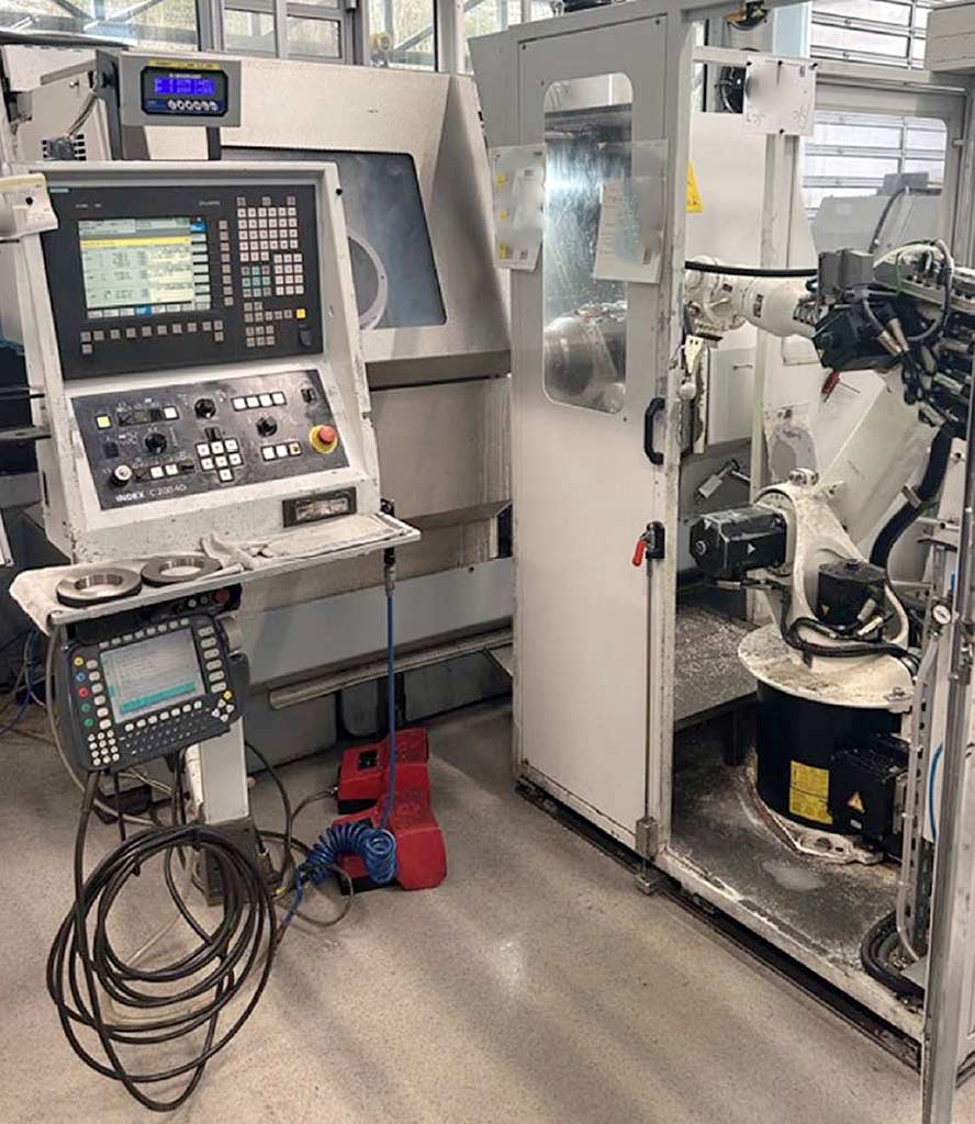 | Description A fully autonomous CNC dual-spindle turning machine Index is available. Turning diameter: 220mm, main spindle bar capacity: 65mm, main spindle power chuck diameter: 210mm, sub-spindle bar capacity: 60mm, sub-spindle power chuck diameter: 210mm, tool stations: 12, Y-axis travel: 120mm, gripper diameter range: 4mm-45mm/40mm-65mm, coolant pump pressure: 8bar, high-pressure pump capacity: 80bar, chip conveyor discharge height: 1250mm. Overall system dimensions X/Y/Z: approx. 9150mm/4350mm/2000mm, weight: approx. 10500kg, operating hours: approx. 92000h. Including bar loader FMB turbo 8-80 XT/3200A, automatic loading and unloading system alphaMAX 6-axis, chip conveyor, coolant system, high-pressure pump and spare parts. Operation with the loading and unloading system is designed for disc diameters from 80mm to 220mm. This is a fully automated system without operator. Documentation available. On-site inspection is possible. Expected to be available from June 2026. |