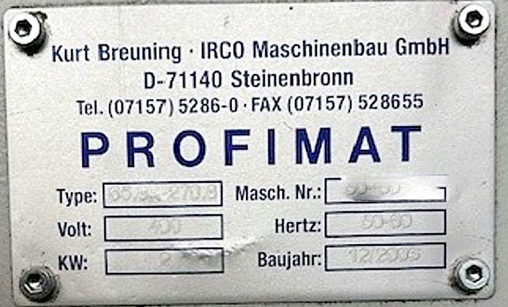 | Description Turning diameter: 220mm, main spindle bore: 65mm, counter spindle bore: 60mm, tool positions: 12, Y-axis travel: 120mm, gripper diameter range: 4mm-45mm/40mm-65mm, coolant pump pressure: 8bar, high-pressure pump output: 80bar, chip conveyor discharge height: 1250mm. Overall system dimensions X/Y/Z: approx. 9150mm/3000mm/2000mm, weight: approx. 9500kg, control system: Siemens 840D, operating hours: approx. 115000h. Including multi-channel loading magazine Breuning/IRCO PROFImat 65.8-PR270/8, portal unloading unit, chip conveyor, coolant system, high-pressure pump and spare parts. Documentation available. On-site inspection is possible. Expected to be available from May 2026. |