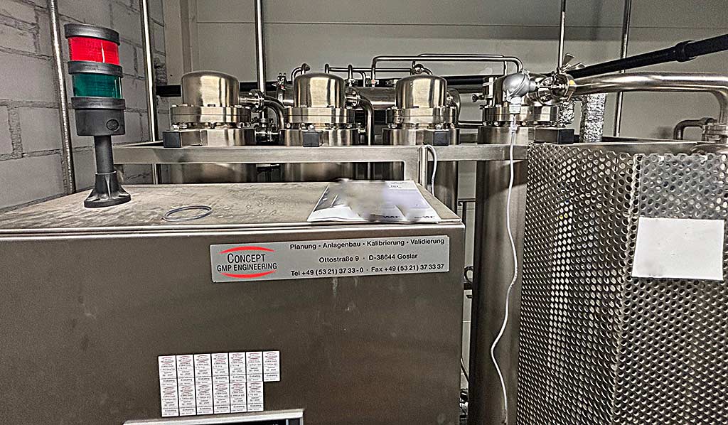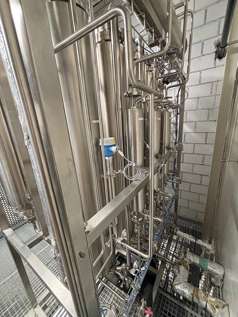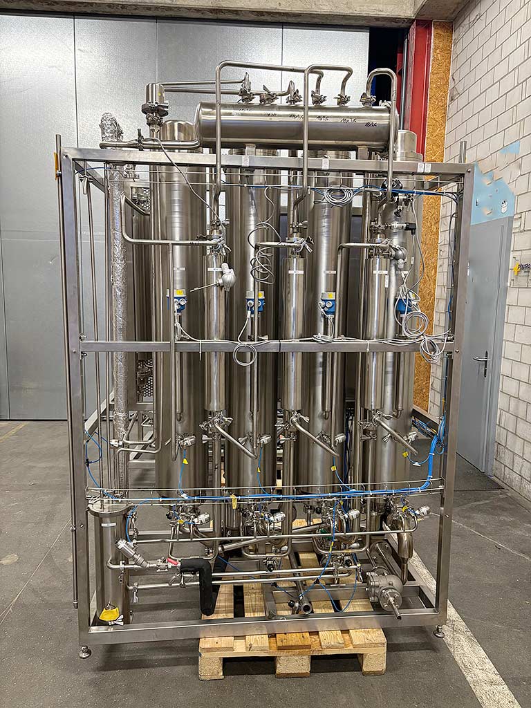 | Description Inlet medium: AP water, outlet medium: distillate, distillate outlet temperature: approx. 99°C, tank volume: 900l, number of preheaters/evaporator columns: 3/4, distillate production: 300l/h, pure steam production: approx. 70kg/h, operating modes: distillate production/pure steam production/WFI loop system sterilization, controls: Siemens SPS S7-300. The distillation unit was designed as part of an overall system but has its own control and automation and can be operated separately. Documentation available. An on-site inspection is possible. |