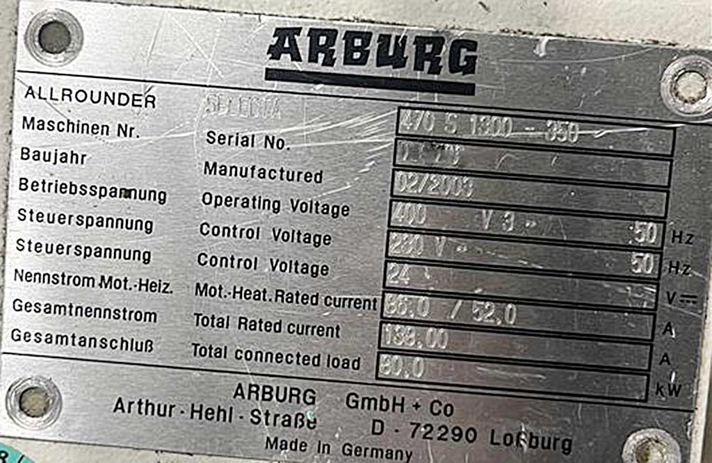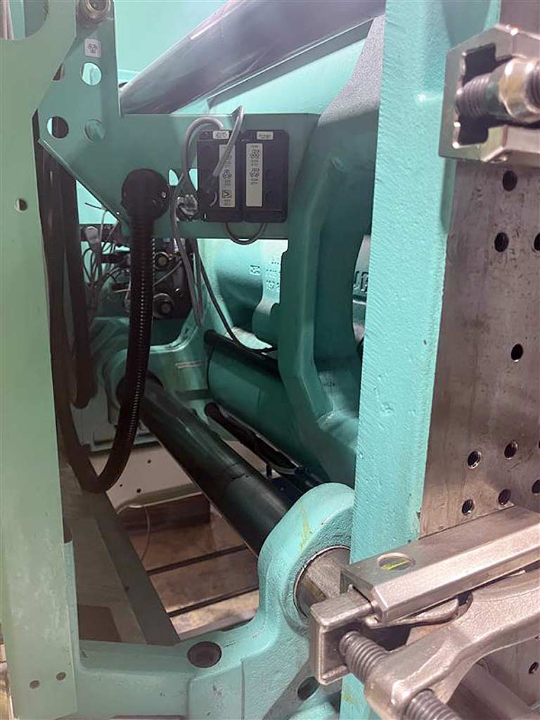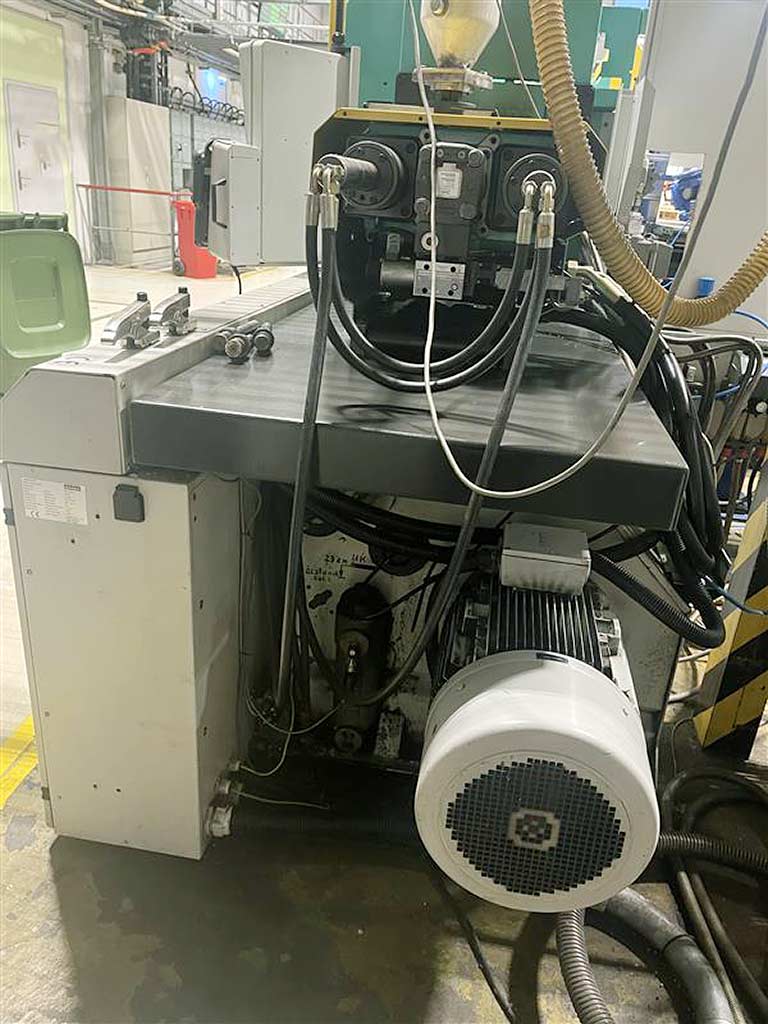 | Description Clamping force: 1300kN, screw diameter: 40mm, max. injection pressure: 2120bar, shot volume: 182m³, shot weight: 153g, tie bar spacing: 470mm/470mm, platen dimensions X/Y: 650mm/650mm, min. mold installation height: 275mm, max. opening stroke: 850mm, centering: 125mm. Machine dimensions X/Y/Z: approx. 4600mm/1600mm/2200mm, weight: approx. 5500kg. The clamping unit shows an oil leakage at the clamping cylinder. Documentation available. An on site inspection is possible. |