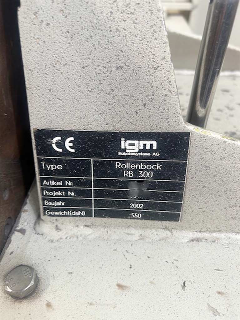 | Description A complete IGM welding system with robot is available. Robot: igm RTI 2000, roller bed: igm RB 300, positioner: igm RP 300, control system: PLC/Kuka K C2. Without workpiece fixtures. Documentation available. An on-site inspection is possible. Expected to be available in May 2026. |