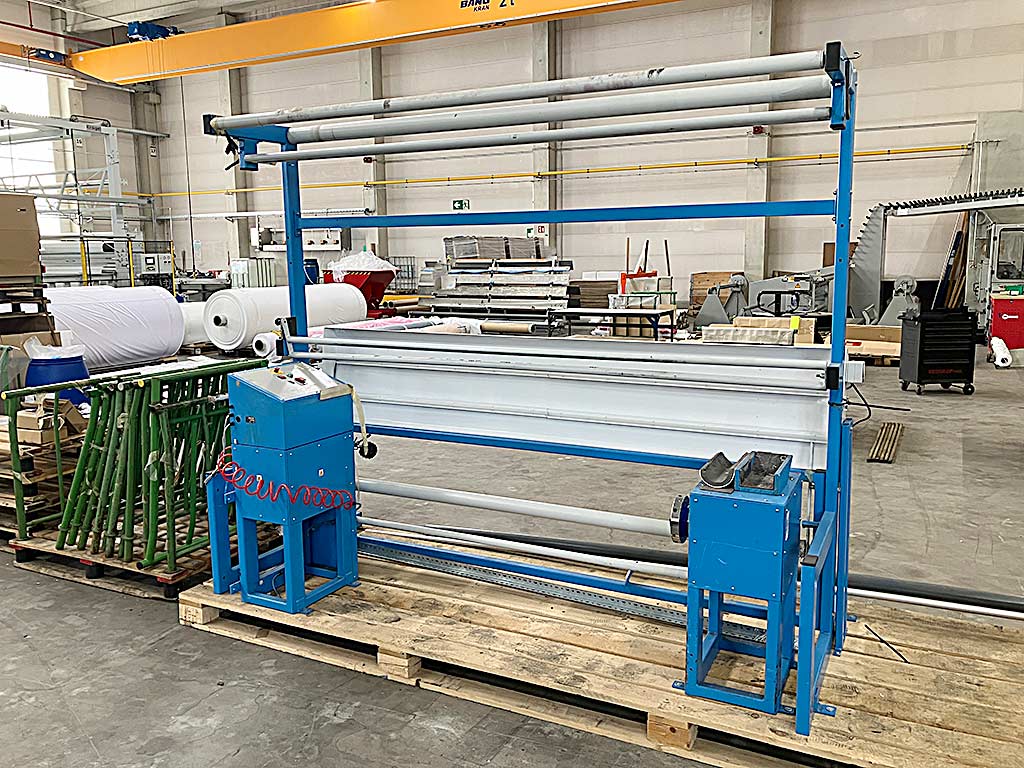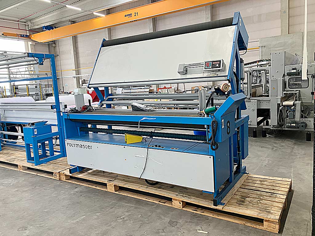 | Description Two Polymaster sample display machines for the film industry are available. Working width: 1900mm/2100mm, roll weight: 100kg, machine dimensions X/Y/Z: approx. 2550mm/1050mm/2000mm. Documentation available. An on site inspection is possible. |