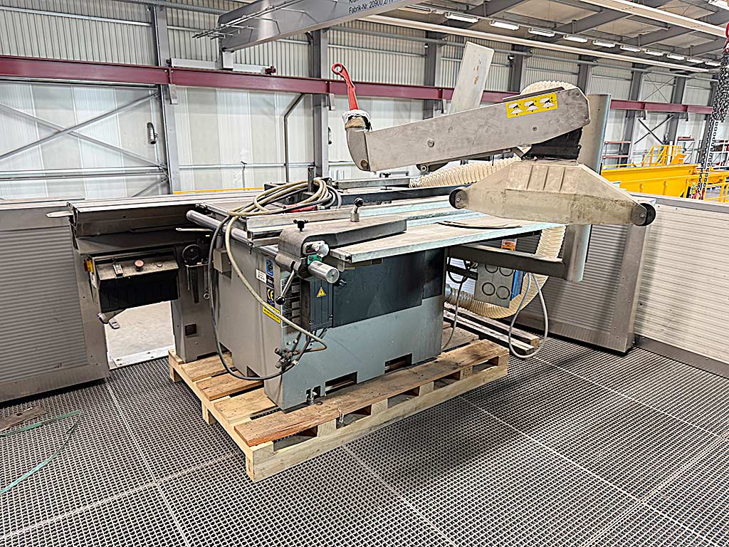 | Description Sliding table length: 2800mm, Cutting width: 1000mm, Saw blade tilting: 45°, Saw blade diameter min./max.: 250mm/450mm, Motor power: 5.5kW, Weight: approx. 1250kg. An on-site inspection is possible. |