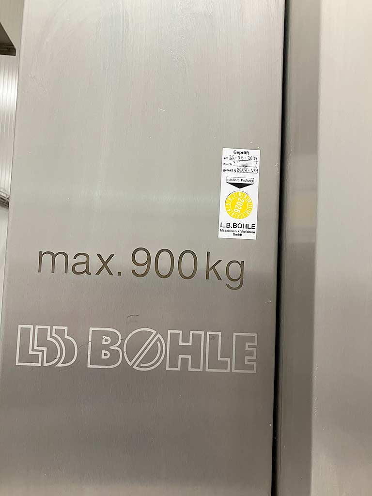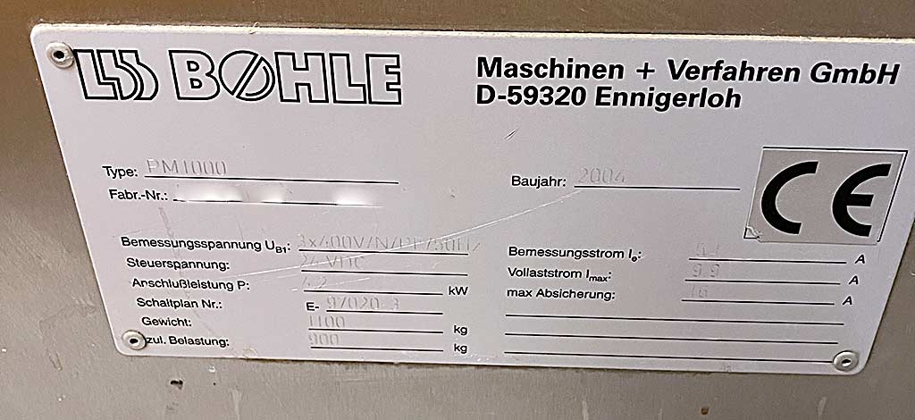 | Description A Bohle container mixer is available. Mixing load: 900kg, Container volume: approx. 800l, Usable filling degree: 85%, Mixer speed: 6rpm, Container diameter: 1100mm, Machine height: 2800mm. An on-site inspection is possible. |