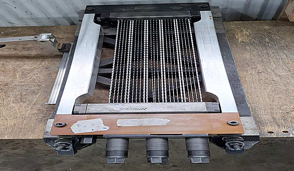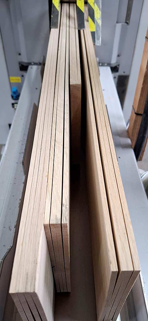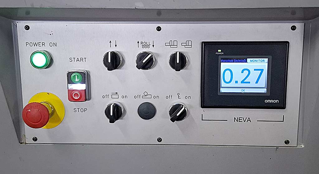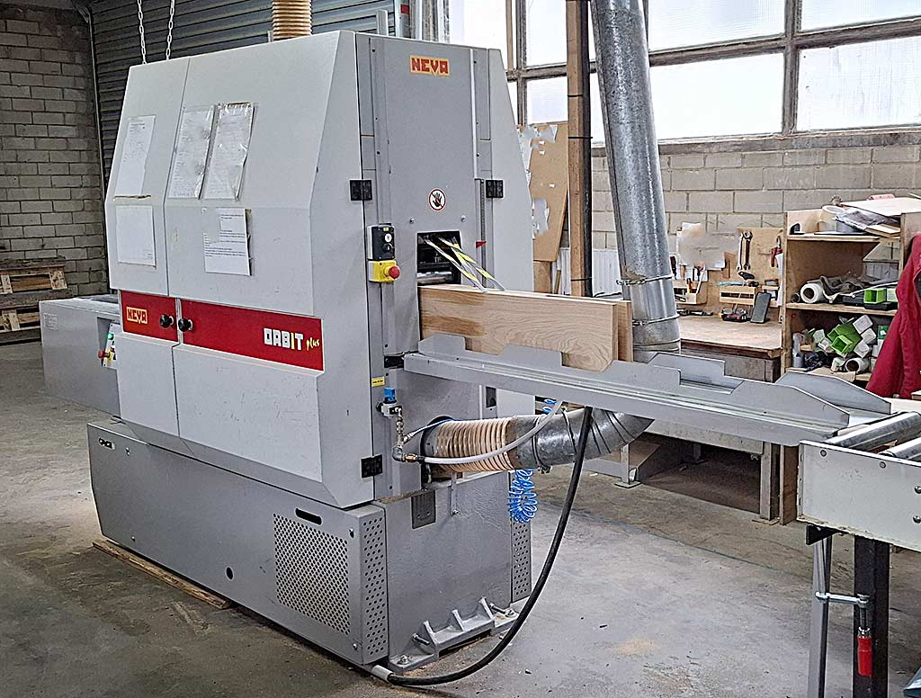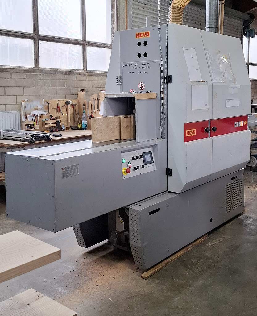 | Description A Neva lamella saw with a saw frame movement methodology is available. Frame stroke: 210mm, stroke rate: 450/min, max. cutting height: 350mm, max. working width: 155mm, max. lamella length: 155mm, min. lamella thickness: 1.5mm, rollers bottom/top: 11/4, production capacity per 8h: approx. 550m²-800m², max. feed speed: 2m/min. Machine dimensions X/Y/Z: approx. 2600mm/800mm/2000mm, weight: approx. 3500kg. Documentation available. An on-site inspection is possible. |