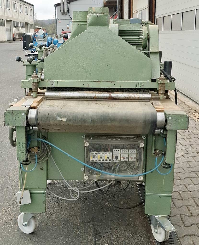 | Description A roller wide belt brushing machine Tilleke is available. Working width: 700mm, Machine dimensions X/Y/Z: approx. 1500mm/1000mm/1600mm, Weight: approx. 750kg. An on-site inspection is possible. |