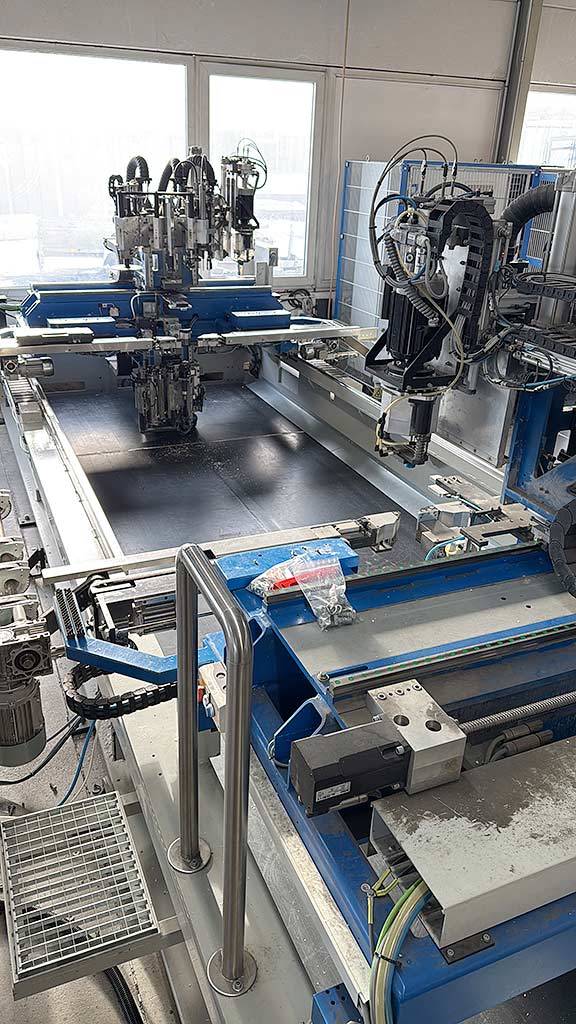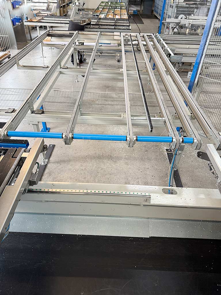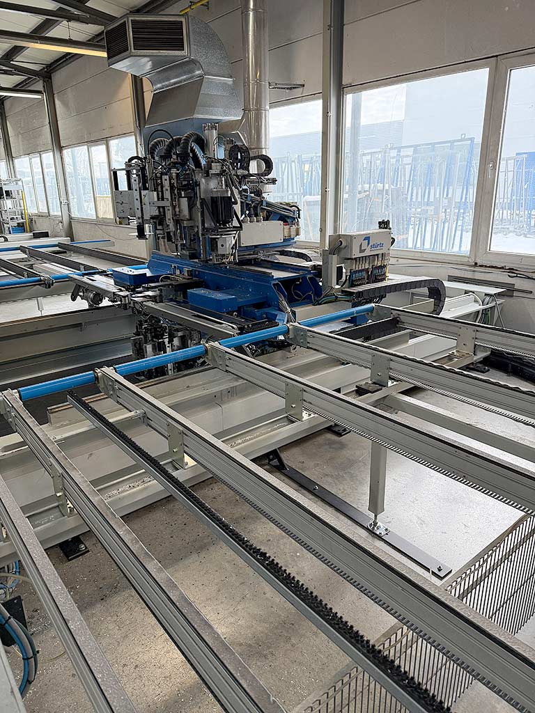 | Description A horizontal dual-head corner cleaning machine Stürtz for the simultaneous machining of two 90° internal and external corners on welded plastic windows is available. Tool stations top/bottom: 8/8, min. product dimensions X/Y without mullion machining: 320mm/370mm, min. product dimensions X/Y with mullion machining: 640mm/370mm, min. frame internal dimension X/Y: 180mm/180mm, max. frame dimensions X/Y: 4000mm/3000mm, installation depth range: 30mm-135mm, profile visible width range: 25mm-120mm, equipment: 4 gasket groove drilling units/4 internal corner measuring devices/4 shadow groove cutters/2 external contour units. Including various accessories and tools. Documentation available. An inspection on site is possible. |