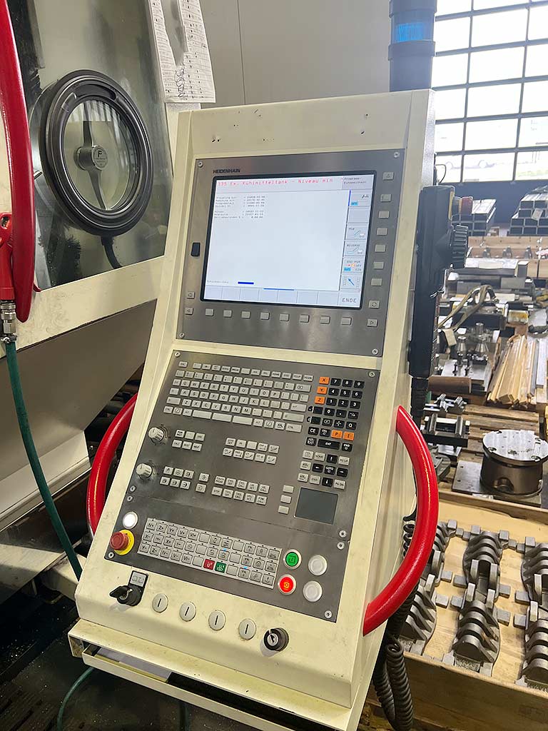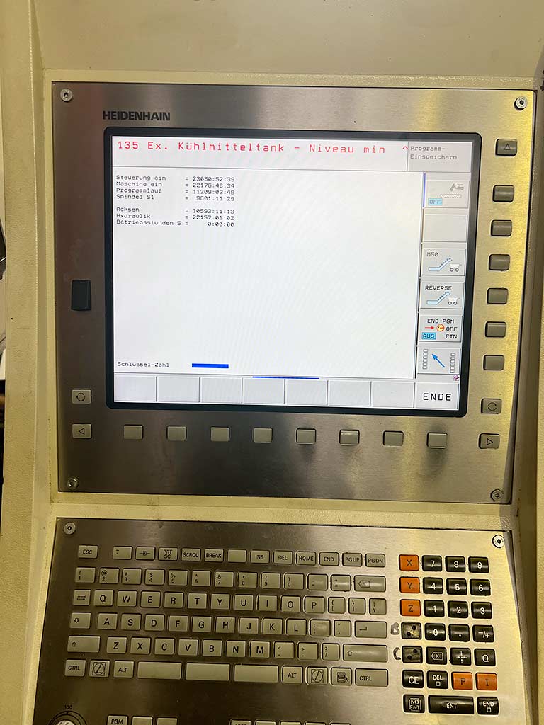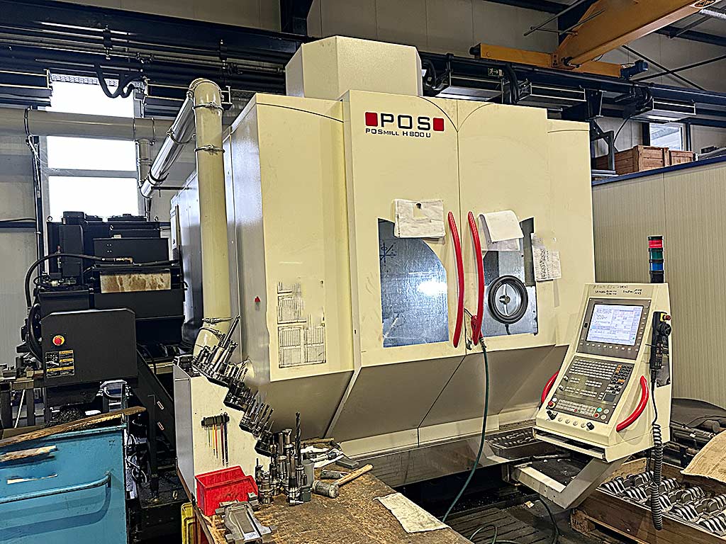 | Description A vertical CNC 5-axis machining center POS is available. Travel X/Y/Z: 670mm/820mm/600mm, rotary table diameter: 800mm, max. table load: 1200kg, tool positions: 96, tool holder: HSK-63, speed: 18000rpm, A-axis: -100°/120°, C-axis: 360°, weight: approx. 20000kg, control: Heidenhain, operating hours: 22177h, spindle hours: 9601h. Including infrared probe, IKZ and Blum laser tool measurement. Documentation available. An on-site inspection is possible. |