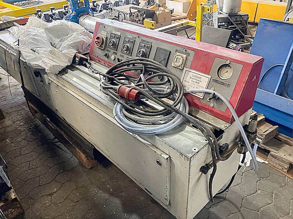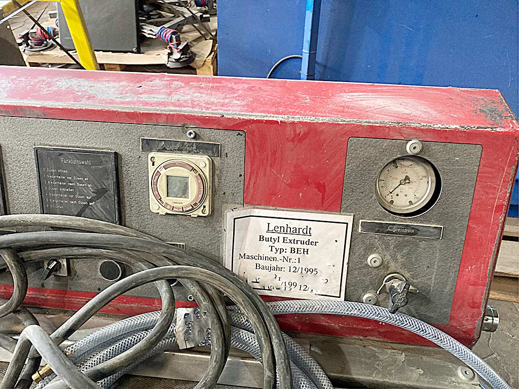 | Description A Lenhard extruder for butyl rubber is available. Application: insulating glass production, material: thermoplastic butyl based on polyisobutylene, max. operating temperature: 140°C, max. butyl pressure: 140bar, max. hydraulic pressure: 150bar. An on-site inspection is possible. |