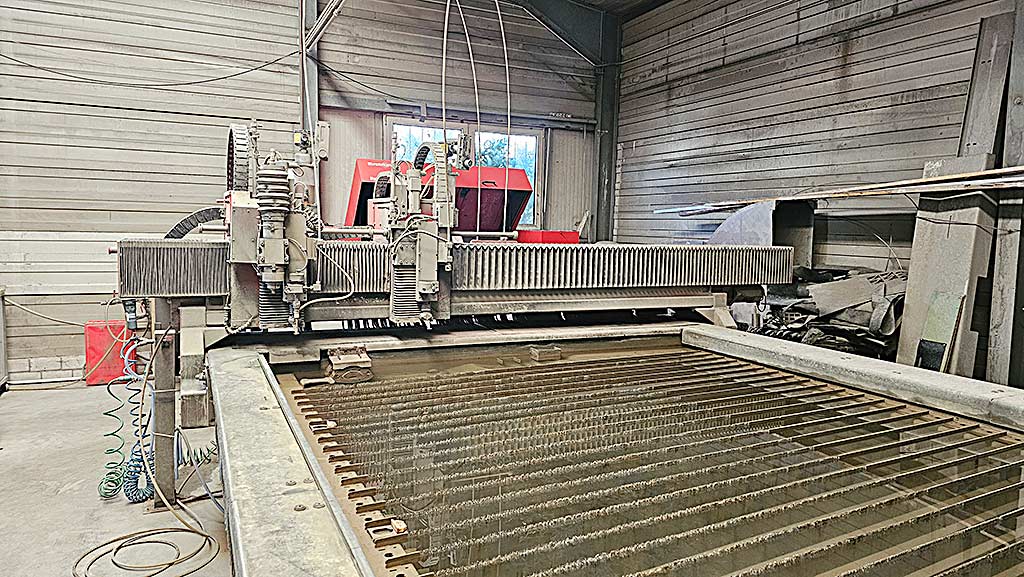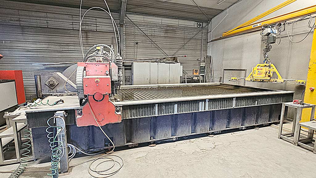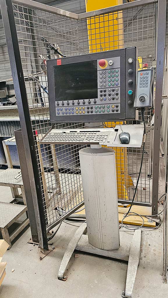 | Description A CNC dual-head waterjet cutting system Bystronic is available. Working dimensions X/Y/Z: 4000mm/2250mm/230mm, cutting heads: 2, max. cutting carriage distance: 1150mm, simultaneous movement: 84m/min, machine tolerance: +/-0.1mm, repeatability: +/-0.05mm, max. frame load capacity: 7000kg, max. workpiece weight: 6300kg, max. round part diameter and length: 440mm/3700mm, max. operating pressure: 3800bar. Machine dimensions X/Y/Z: approx. 9000mm/7550mm/2050mm, weight: approx. 10000kg, operating hours: approx. 41130h, cutting hours head 1/head 2: 13720h/956h. The second head was removed and the cutting unit was mounted on head 1 as a spare part. However, after procurement of a new cutting head, the system can operate with two abrasive tools. The drilling spindle is seized. Including a desalination system and all spare parts. Documentation available. An on-site inspection is possible. |
