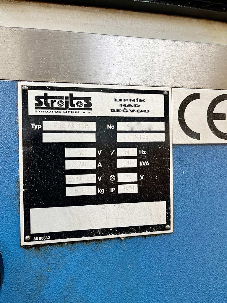 | Description Travel X/Y/Z: 1400mm/630mm/600mm, table dimensions X/Y: 1800mm/630mm, maximum workpiece weight: 1000kg, spindle taper: ISO50, speed: 2800rpm, torque: 1600Nm, spindle drive: 15kW, machine dimensions X/Y/Z: approx. 3450mm/4300mm/2300mm, weight: approx. 5850kg, documentation available, an on-site inspection is possible. |