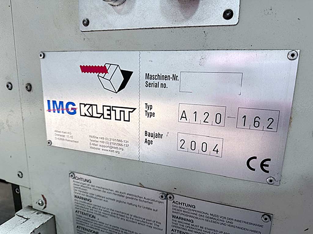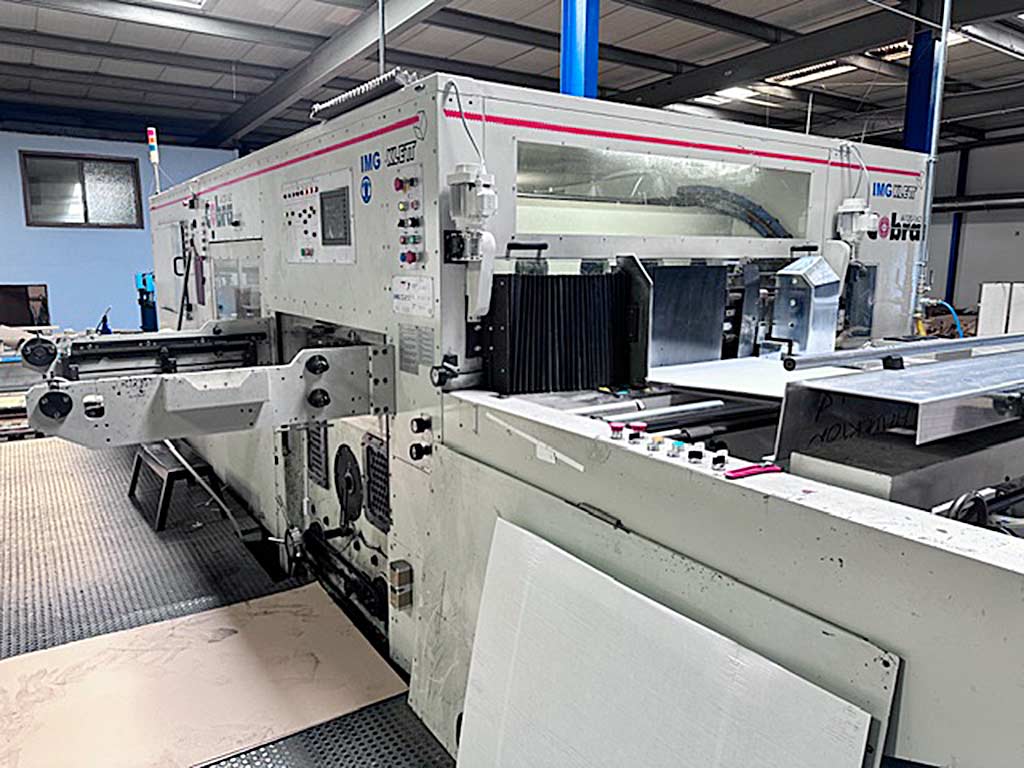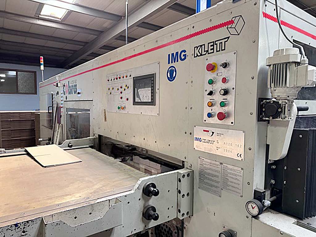 | Description A defective flatbed die-cutting machine IMG Klett is available. Chase inner dimensions X/Y: 1630mm/1210mm, max. cutting dimensions X/Y: 1600mm/1180mm, min. sheet dimensions X/Y: 650mm/450mm, max. sheet dimensions X/Y: 1200mm/1620mm, min. sheet thickness: 1mm, max. corrugated board thickness: 8mm, max. plastic corrugated material thickness: 8mm, gripper margin waste area: 9mm-15mm, max. cutting force: 400t, motor power: 22kW. Machine dimensions X/Y/Z: approx. 7550mm/5200mm/2450mm, weight: approx. 32000kg. Documentation available. An on-site inspection is possible. |