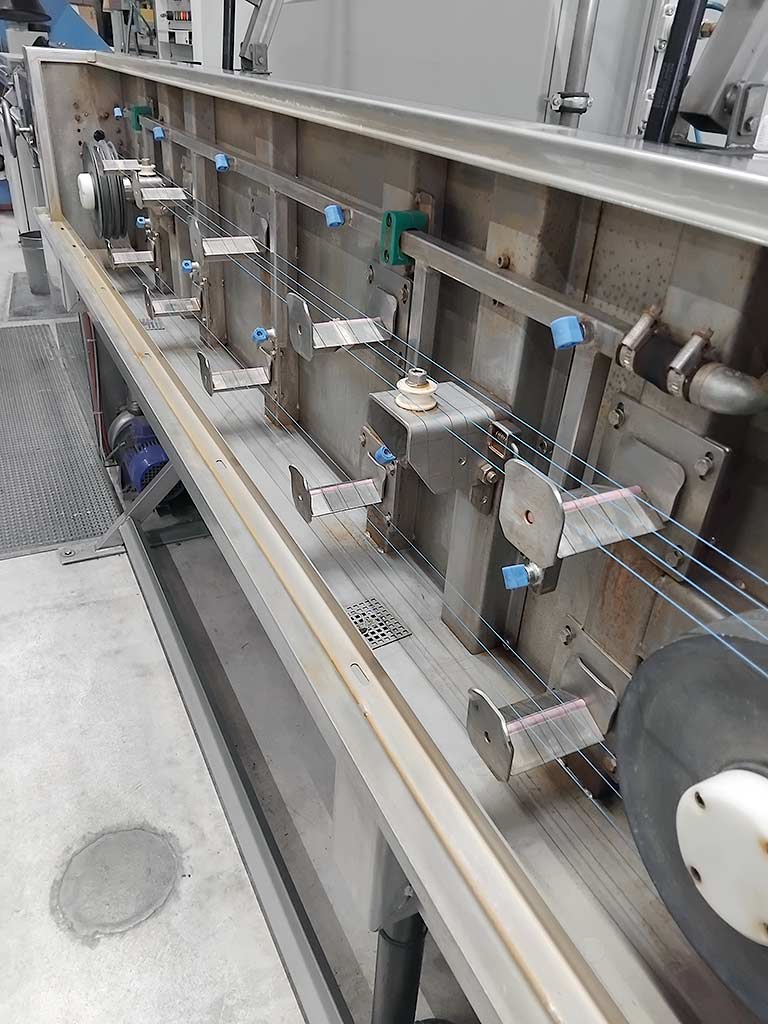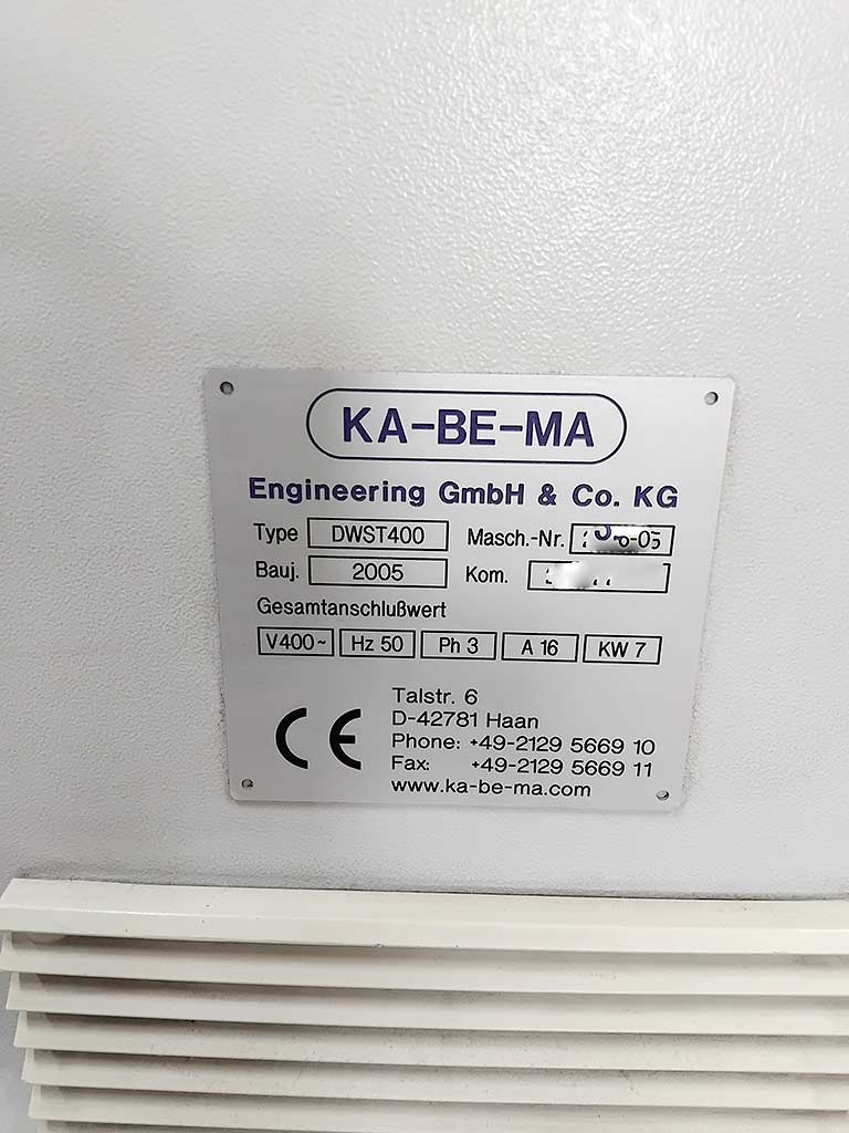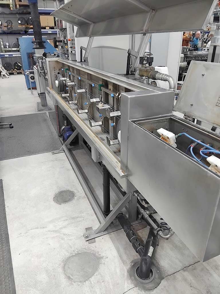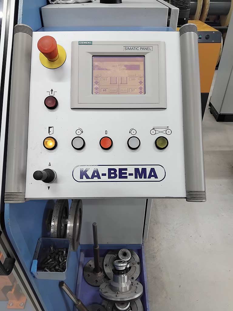 | Description Three cable processing machines from a complete extrusion line are available. 1) Spindle pay-off Ka-Be-Ma AS400, spool flange diameter range: 140mm-400mm, min. core diameter: 90mm, max. spool width: 300mm, max. spool weight: 50kg, conductor diameter range: 0.1mm-1mm, max. pay-off speed: 600m/min, tensile force: 0.5N-20N, machine dimensions X/Y/Z: approx. 1200mm/1550mm/1450mm, weight: approx. 1000kg. 2) Cooling section Ka-Be-Ma T-KW-UKW-A-1,5, Zone 1: Process: immersion cooling, temperature range: 70°C-80°C, length: 2000mm. Zone 2: Process: spray cooling/deflection section, temperature: approx. 25°C. 3) Dual take-up Ka-Be-Ma DWST400-1, spool flange diameter range: 305mm-400mm, min. core diameter: 156mm, max. spool width: 282mm, conductor diameter range: 0.1mm-1mm, speed: 600m/min, tensile force range: 0.5N-1.5N, max. spool weight: 80kg, machine dimensions X/Y/Z: approx. 1200mm/1550mm/1450mm, weight: approx. 2200kg. Documentation available. An on-site inspection is possible. |