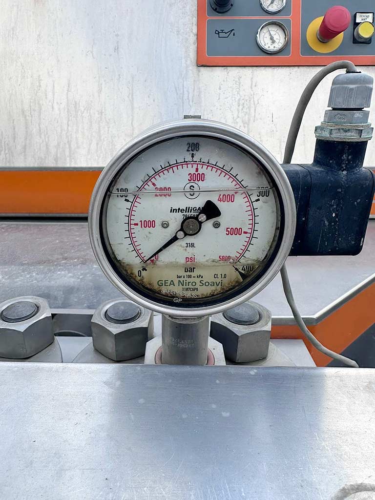 | Description A high-pressure homogenizer GEA is available. Stroke: 100mm, plunger diameter: 80mm, max. operating pressure: 200bar, throughput capacity: approx. 14000l/h, max. product temperature: 90°C, max. process temperature cleaning/sterilization: 140°C, machine dimensions X/Y/Z: approx. 2250mm/1600mm/1600mm, weight: approx. 3500kg. Including control cabinet and spare parts. The unit has new gearboxes. Documentation available. An on-site inspection is possible. |