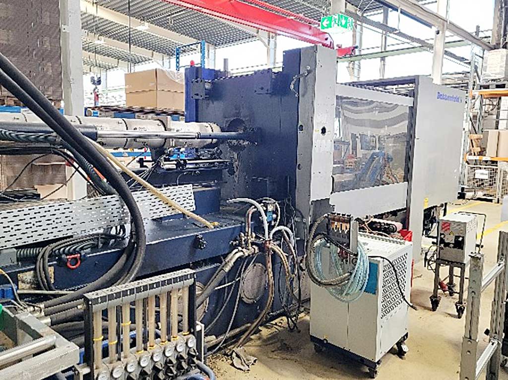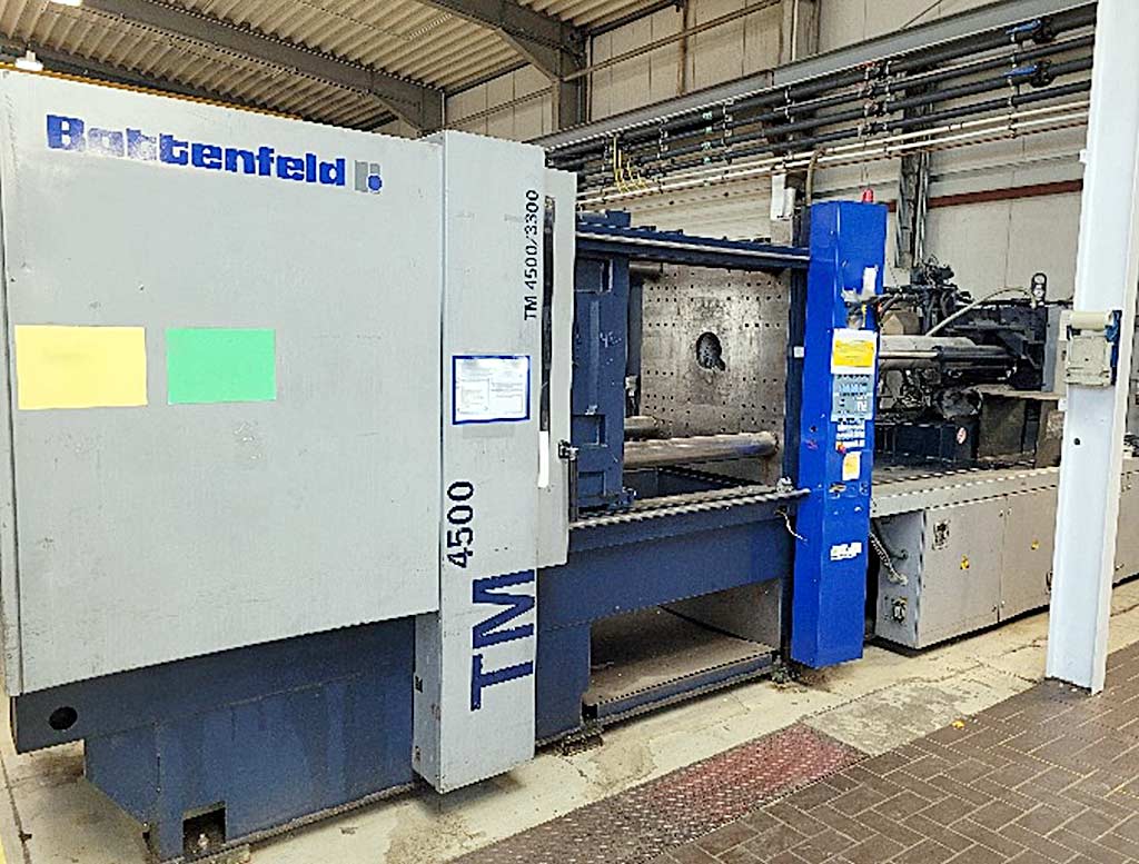 | Description A large-format horizontal injection molding machine Battenfeld is available. Operating pressure: 210bar, clamping force: 4500kN, screw diameter: 85mm, injection volume: 2128cm³, injection pressure: 1624bar, tie-bar spacing: 900mm/800mm, opening stroke: 950mm, max. mold installation height: 970mm, oil volume: 900l, connected load: 55kW, weight: approx. 20400kg. Documentation available. An on-site inspection is possible. The machine has a defect. |