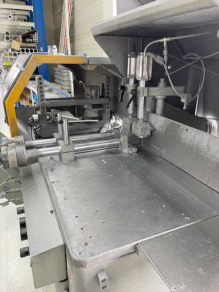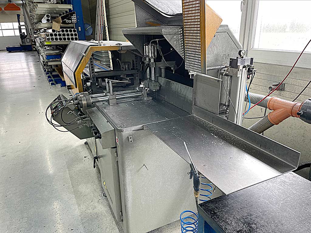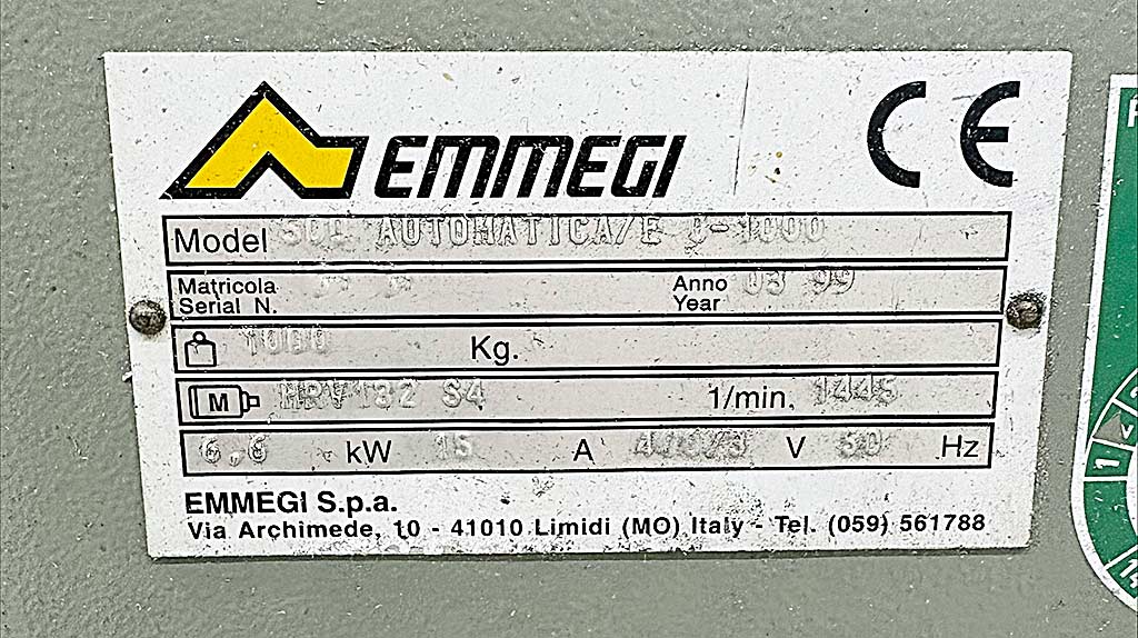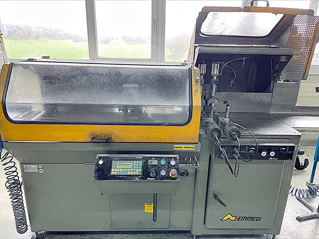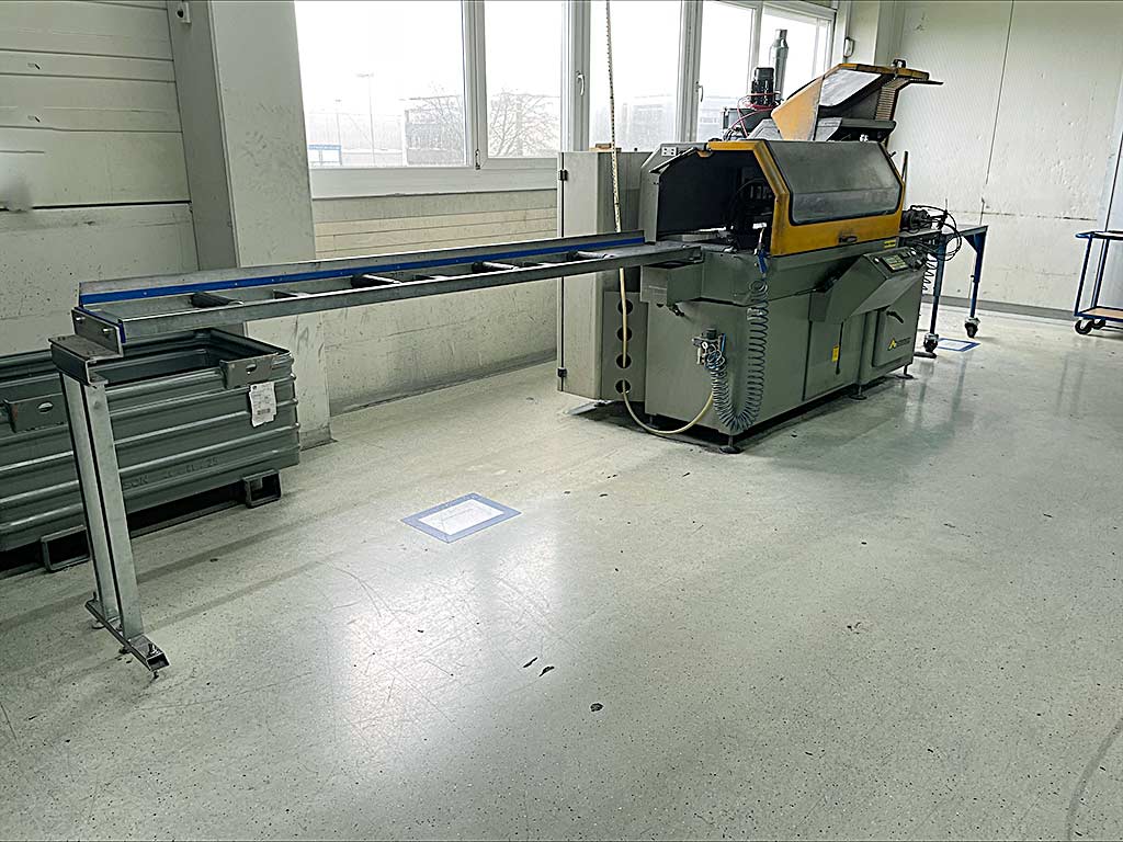 | Description An automatic single-head underfloor saw Emmegi including a chip extraction system is available. Cutting angle: 90°, feed travel: 0mm-1000mm, positioning accuracy: +/-0.5mm, saw blade diameter: 500mm, motor power: 6.6kW, weight: approx. 1000kg. An on-site inspection is possible. |