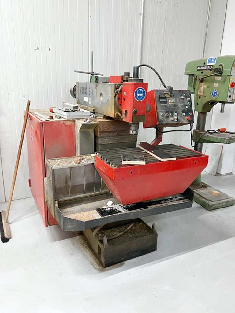 | Description A CNC universal tool milling machine Emco is available. Travel X/Y/Z: 450mm/300mm/350mm, table dimensions X/Y: 800mm/400mm, speed: 2500rpm, tool holder: SK40, quill stroke: 100mm, milling head swivel: +/-90°, feed: 400mm/min, rapid traverse: 4m/min, machine dimensions X/Y/Z: approx. 1500mm/1500mm/1700mm, weight: approx. 1500kg. An on-site inspection is possible. |
