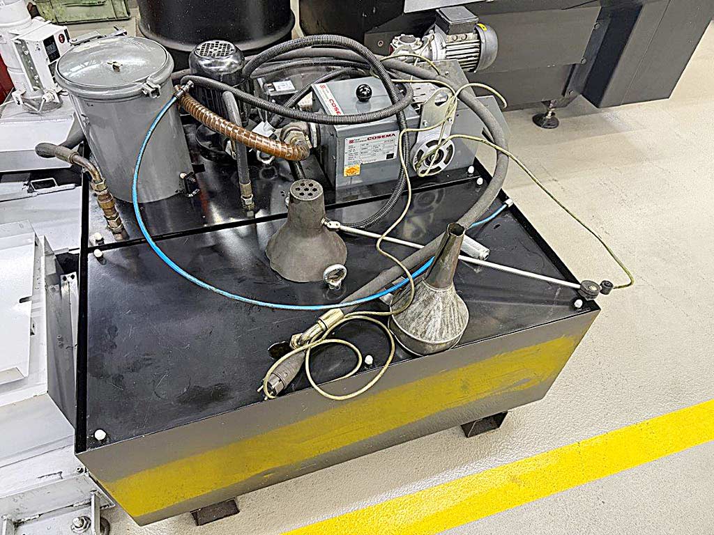 | Description A vertical cross grinding machine Sunnen is available. Bore diameter range: 3mm-65mm, max. workpiece length: 250mm, working area dimensions X/Y/Z: 150mm/150mm/150mm, slide speed range: 0.001mm-0.8mm/s, stroke rate range: 30-400, spindle speed: 4000rpm, feed force: 3800N, grinding oil tank volume: 280l. Machine dimensions X/Y/Z: approx. 2150mm/2200mm/2900mm, weight: approx. 2200kg, operating hours: approx. 5000h. Including indexing table and grinding oil tank with magnetic separator and filter. Documentation available. An on-site inspection is possible. |