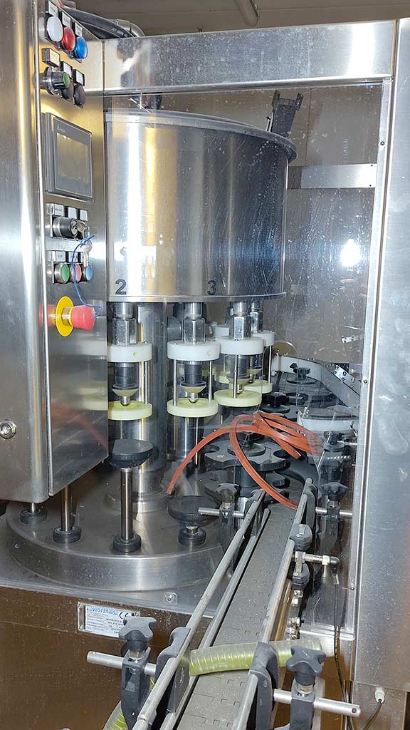 | Description A complete filling line with a 12-position gravity and vacuum filler with integrated twist-off capper for the food industry is available. Filling stations: 12, design: rotary machine, liquid viscosity: thin-medium, filling capacity: approx. 2000bottles/h, capping capacity: approx. 1000-1200/h, containers: heat-insulated, container volume: 35l/50l. This is a complete filling line including conveyor belts, accumulation table, sensors, rotary tables, pumps and format parts. The system was taken out of operation in 2024. Documentation available. An on-site inspection is possible. |