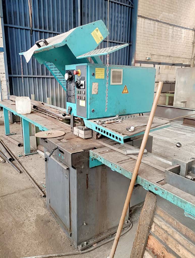 | Description Saw blade diameter: 400mm, miter range: +/-90°, max. round material cutting capacity: 130mm, max. square material cutting capacity: 120mm, max. flat material cutting capacity: 305mm/20mm, machine dimensions X/Y/Z: approx. 1050mm/900mm/1850mm, weight: approx. 850kg, on-site inspection is possible. |