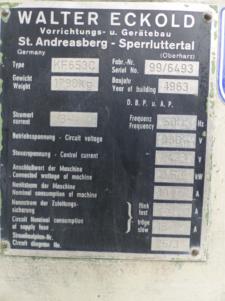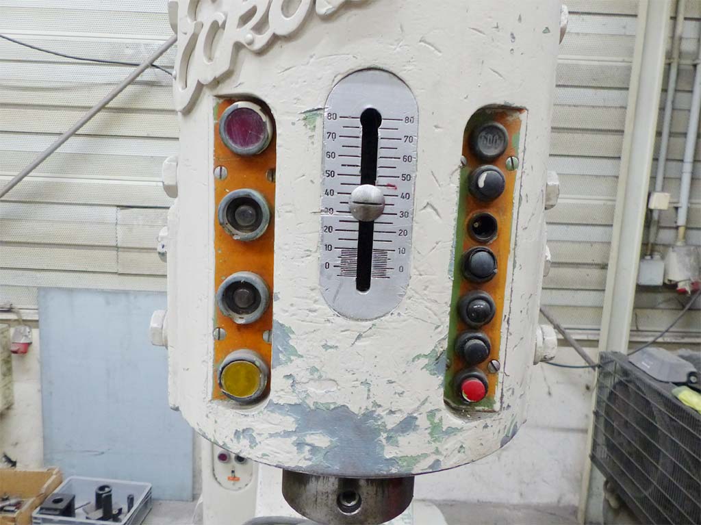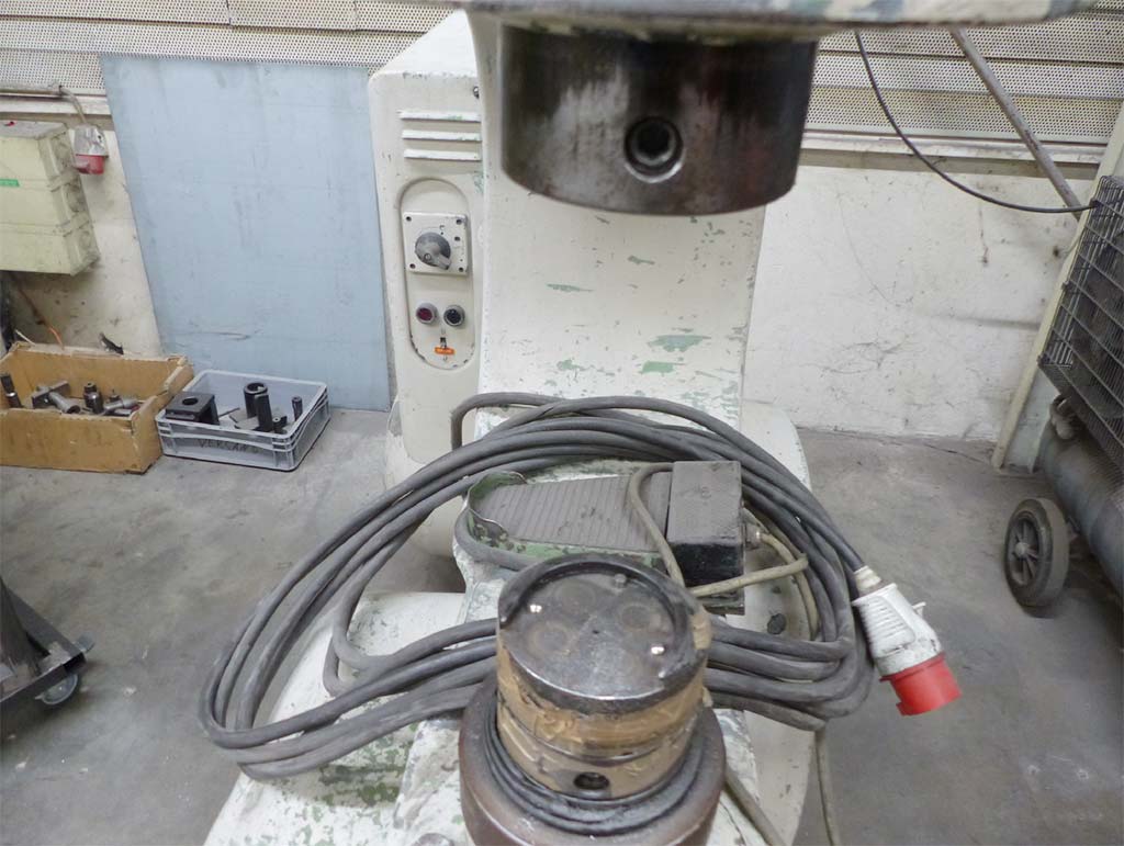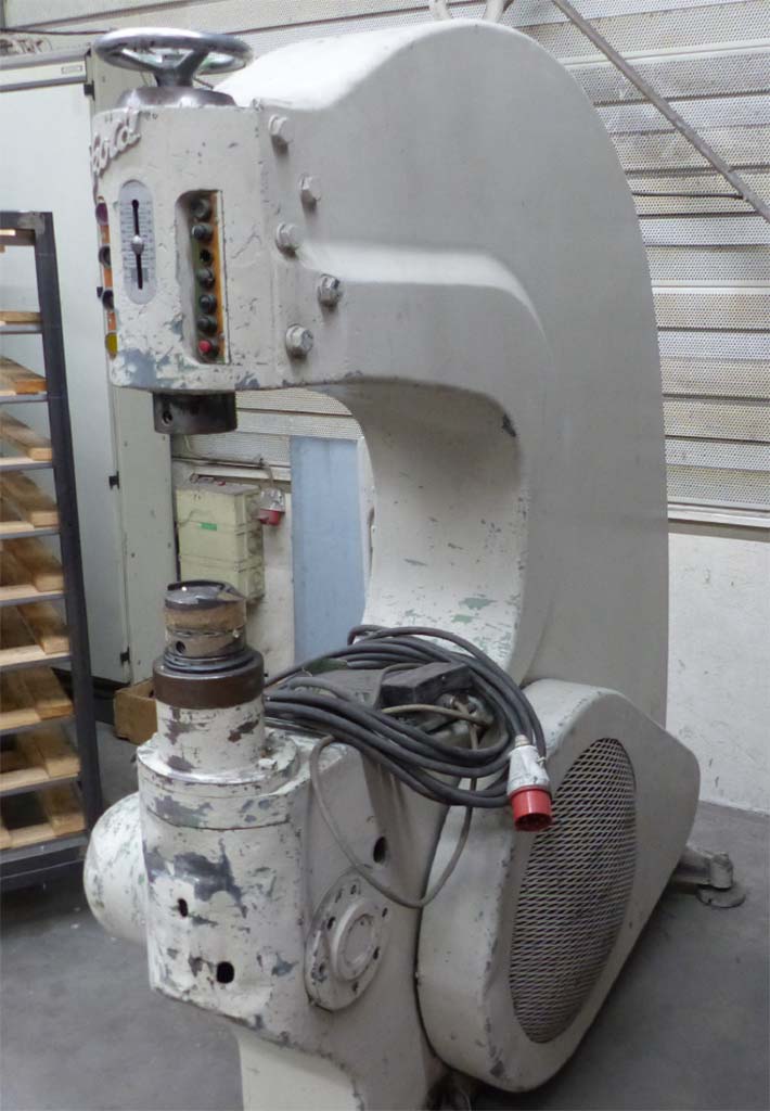 | Description Max. forming force: 80t, connected load: 3.5kW, current type: 3 phases, frequency: 50Hz, operating voltage: 380V, control voltage: 24V, rated current of the machine: 10A, rated current of the supply fuse fast-blow: 25A, slow-blow: 15A, weight: 1.79t. With documentation, without accessories or spare parts. Regularly maintained, machine has a defect, the speed adjustment no longer functions fully. An on-site inspection is possible. |