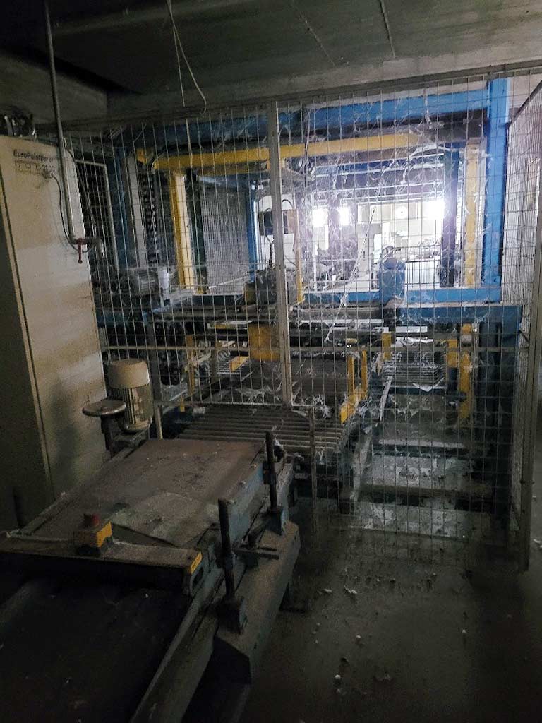 | Description A Happel layer palletizer is available. Products: bags/cartons/bundles/containers/drums, package rotation: 90°/180°/270°, pallet format: 800mm/1200mm, max. pallet height: 1500mm, min. product dimensions X/Y/Z: 150mm/150mm/40mm, max. layer weight: 150kg, max. palletizing capacity: approx. 2500pieces/h. Machine dimensions X/Y/Z: approx. 4000mm/2600mm/2500mm, weight: approx. 2500kg. An on-site inspection is possible. |
