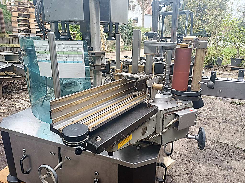 | Description A wet glue rotary labeling machine Krones for bottles is available. Bottle formats: 1l/0.75l. Including various format parts and variable label magazine. An on-site inspection is possible. |