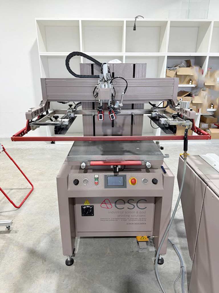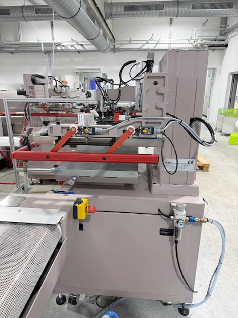 | Description Four identical screen printing machines ESC are available. Rigid material thickness: 200mm, max. print format X/Y: 400mm/600mm, vacuum plate dimensions X/Y: 500mm/700mm, vacuum area dimensions X/Y: 405mm/600mm, max. frame dimensions X/Y: 600mm/940mm, frame profile range: 25mm-47mm, max. print material thickness: 200mm, working height: 960mm, frame lift: 270mm, printing speed range: 125mm-750mm/s, max. cycle rate: 600p/h, fine adjustment: +/-10mm, squeegee angle adjustment: +/-9°, working pressure range: 5bar-7bar. Machine dimensions X/Y/Z: approx. 1300mm/1100mm/1600mm, weight: approx. 500kg. Documentation available. An on-site inspection is possible. Individual sale possible. |