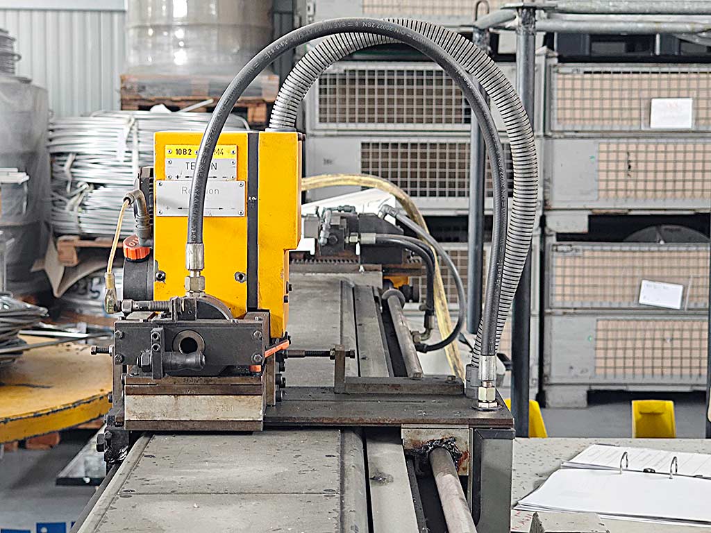 | Opis Tube diameter: 25mm, wall thickness: 2mm, bending angle: 190°, feed length: 2000mm, weight: 2t, left-bending. Accessories: CNC IsoBend 2.0. Without mandrel bending device, monitor glass has impact damage but is still functional. An on-site inspection is possible. |