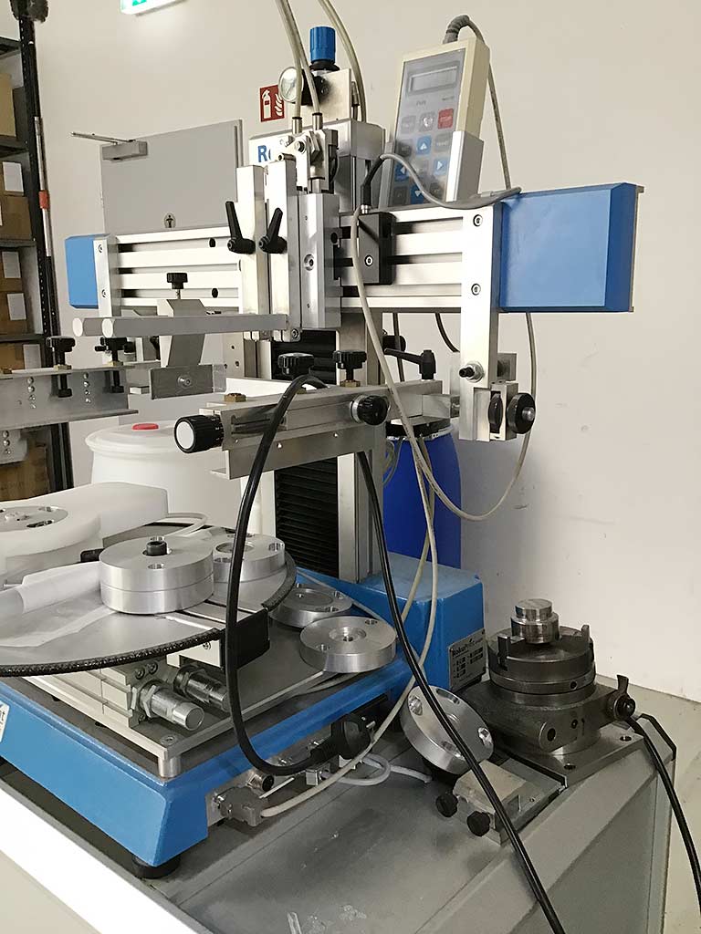 Opis A RokuPrint universal screen printing machine for flat, round and radius printing as well as laboratory applications is available. Screen frame format: 600mm/300mm, max. flat printing dimensions X/Y: 300mm/200mm, max. part height: 160mm/250mm, printing capacity: approx. 1800 prints/h, machine dimensions X/Y/Z: approx. 800mm/550mm/600mm, weight: approx. 50kg. Documentation available. An on-site inspection is possible. |