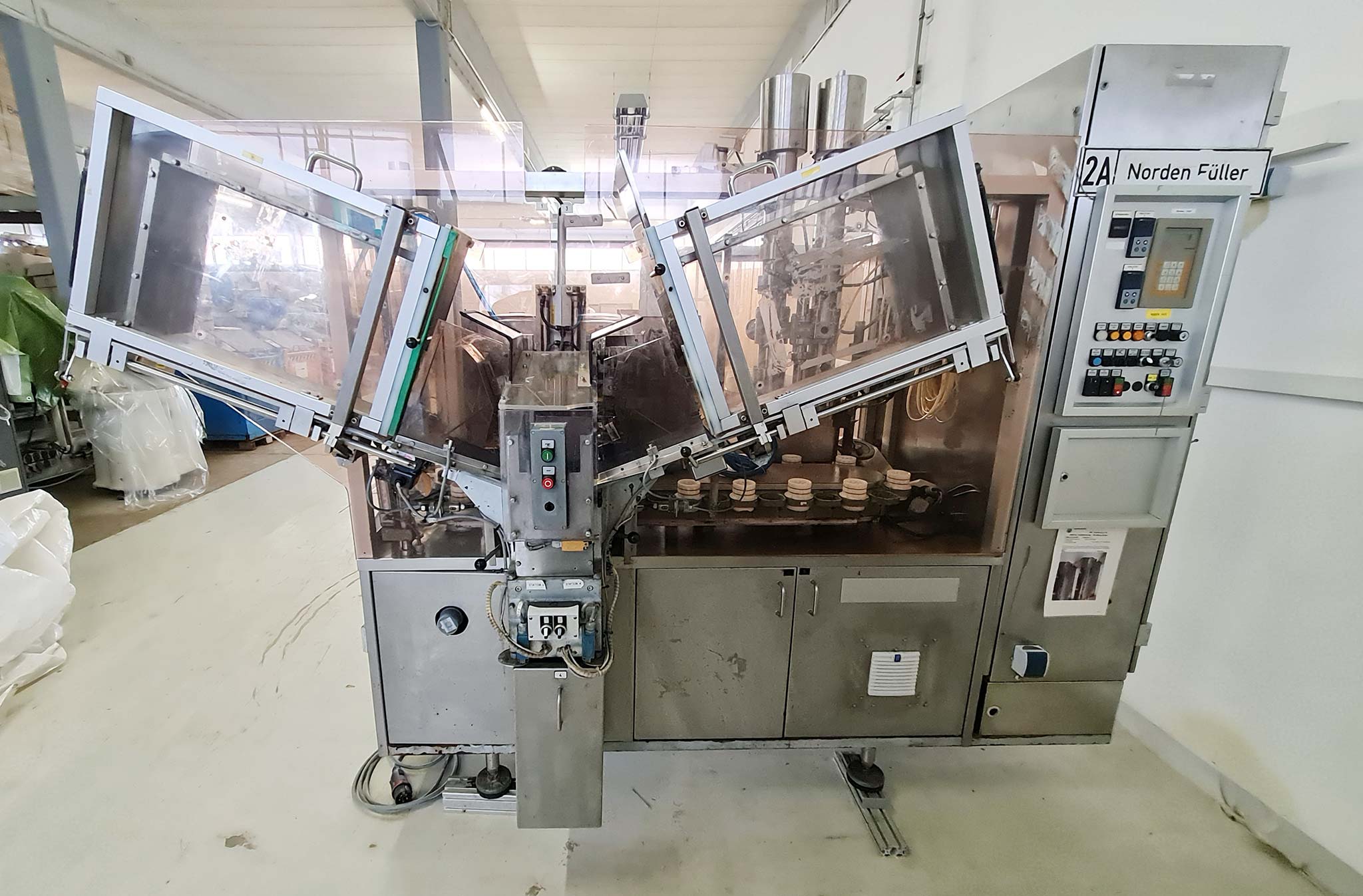 | Opis A semi-automatic tube filling and sealing machine Norden Machinery with chute and vacuum tipper is available. Filling volume range: 1ml-300ml, container volume: 90l, filling capacity: approx. 140tubes/min, machine dimensions X/Y/Z: approx. 2500mm/1400mm/2400mm, weight: approx. 3300kg. Documentation available. An on-site inspection is possible. |