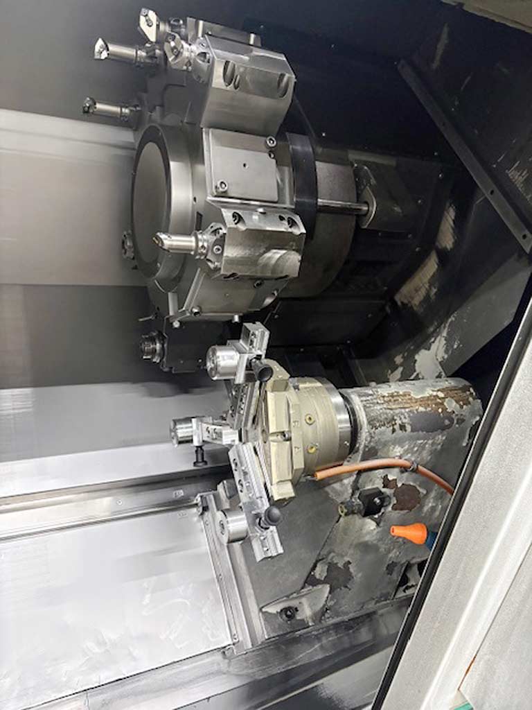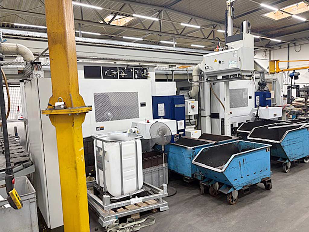 | Opis Two identical CNC lathes Mori Seiki are available. Turning diameter: 356mm, max. machining length: 705mm, travel X/Z: 260mm/795mm, speed: 4000rpm, spindle bore: 91mm, spindle power: 18.5kW, tool positions: 12. Machine dimensions X/Y/Z: approx. 2800mm/1900mm/2150mm, weight: approx. 6000kg, control: Mitsubishi/Fanuc. The operating hours have a maximum display value of 9999h, therefore the exact runtime cannot be determined. Documentation available. An on-site inspection is possible. |