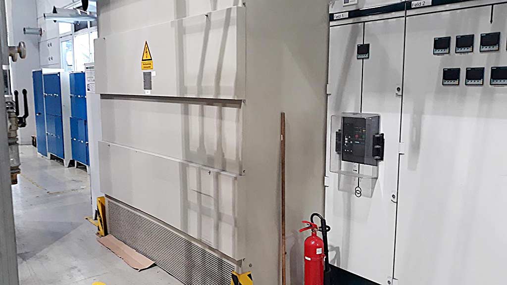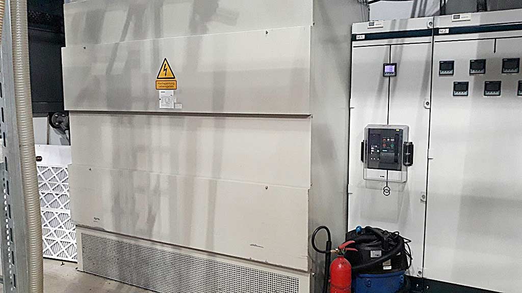 Opis Two low-voltage systems consisting of two Siemens transformers and reactive power control units are available. 1) 3-phase dry-type transformer Siemens 4GD6164-3ZY, year of manufacture: 2013, power: 1250kVA, transformer dimensions X/Y/Z: approx. 3500mm/2400mm/3000mm, weight: approx. 3000kg, reactive power control unit dimensions X/Y/Z: approx. 1000mm/1000mm/3000mm, main low-voltage distribution dimensions X/Y/Z: approx. 3600mm/1000mm/3000mm, doors: 4. 2) 3-phase dry-type transformer Siemens 4GD6164-3ZY, year of manufacture: 2015, power: 1000kVA, transformer dimensions X/Y/Z: approx. 3500mm/2400mm/3000mm, weight: approx. 3000kg, reactive power control unit dimensions X/Y/Z: approx. 1000mm/1000mm/3000mm, main low-voltage distribution dimensions X/Y/Z: approx. 2400mm/1000mm/3000mm, doors: 3. Documentation available. An on-site inspection is possible. Individual sale possible. |