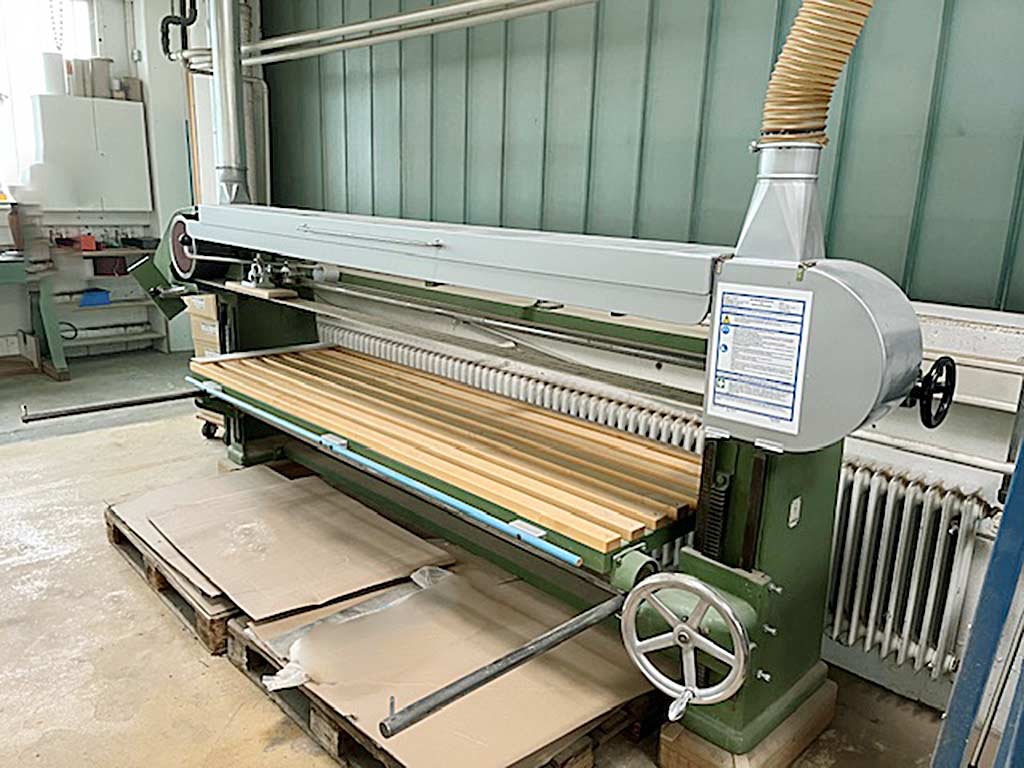 Opis A wide belt sanding machine (presumably Johannsen) is available. Working width: 150mm, sanding belt length: 7100mm, sanding belt width: 150mm, working height range: 0mm-150mm, table dimensions X/Y: approx. 3000mm/1000mm, sanding belt speed: approx. 20m/s, machine dimensions X/Y/Z: approx. 4000mm/1300mm/1800mm, weight: approx. 1000kg. An on-site inspection is possible. |