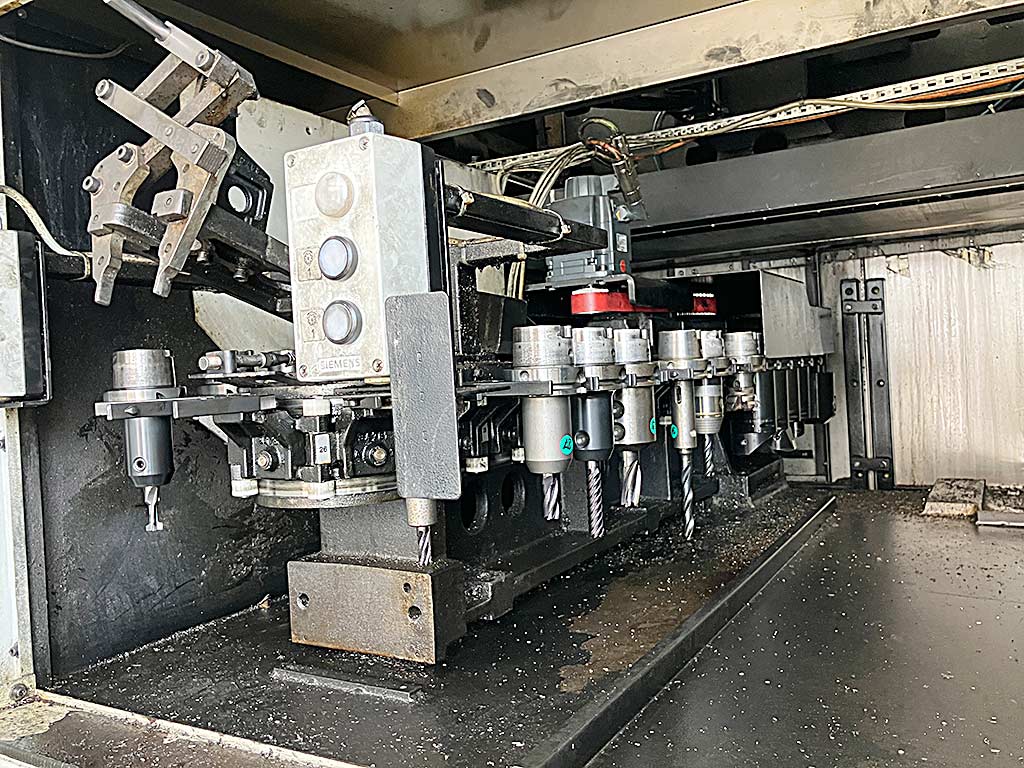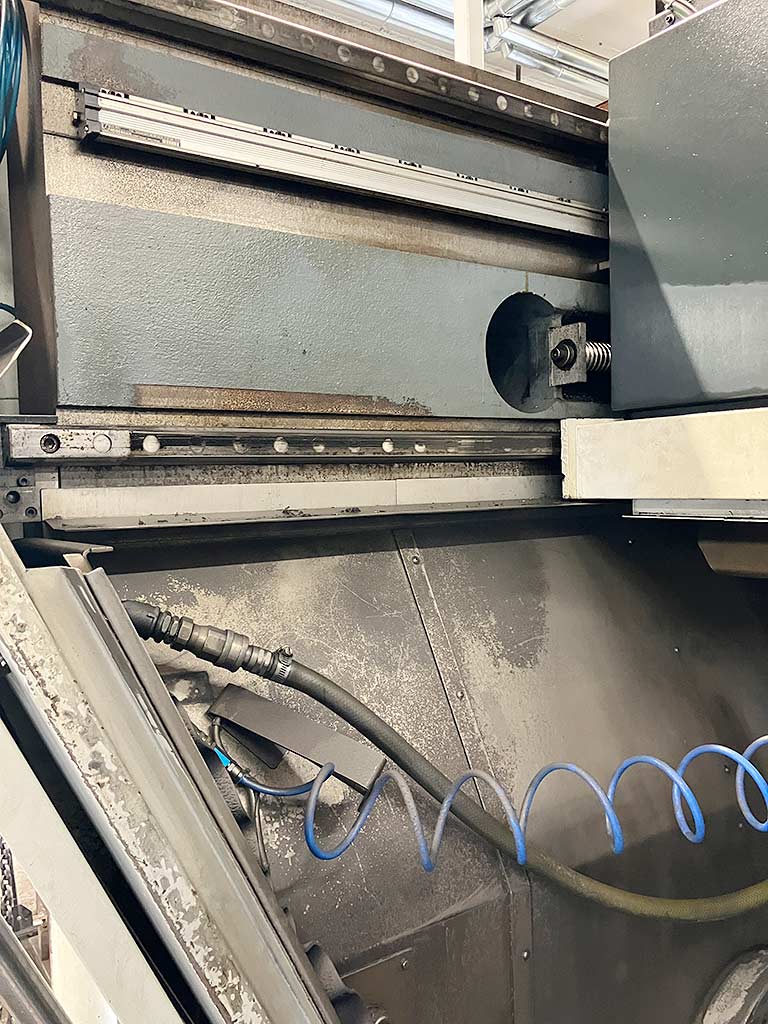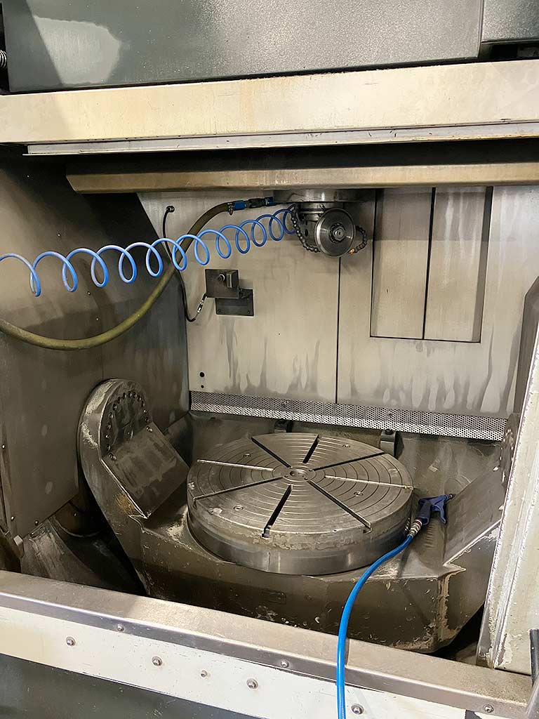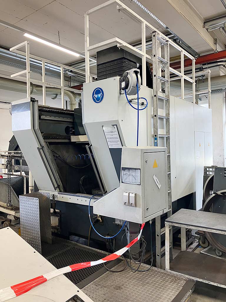 | Opis A CNC 5-axis portal machining center Alzmetall with milling-turning table is available. Travel X/Y/Z: 800mm/800mm/600mm, B-axis swivel: +/-120°, C-axis rotation: 360°, table diameter: 630mm, max. table load: 1000kg, tool holder: HSK-A63, spindle speed: 12000rpm, tool positions: 33, max. workpiece diameter: 90mm/125mm, max. tool length: 300mm, max. tool weight: 8kg, rapid traverse: 60m/min, feed rate: 30m/min. Machine dimensions: approx. 3700mm/3000mm/3200mm, weight: approx. 15500kg. Documentation available. An on-site inspection is possible. |
