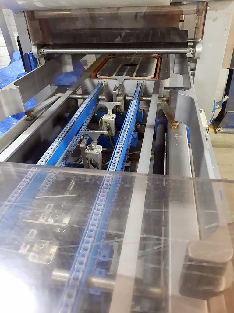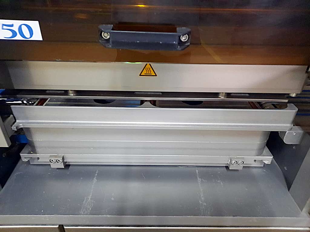 | Opis Tray dimensions X/Y 1: 250mm/180mm, tray dimensions X/Y 2: 357mm/265mm, max. film width: 400mm, packaging output: approx. 6–8 cycles/min. Machine dimensions X/Y/Z: approx. 5000mm/900mm/2000mm, weight: approx. 800kg. Documentation available. An on-site inspection is possible. |