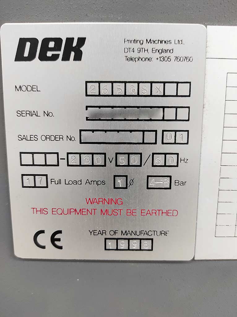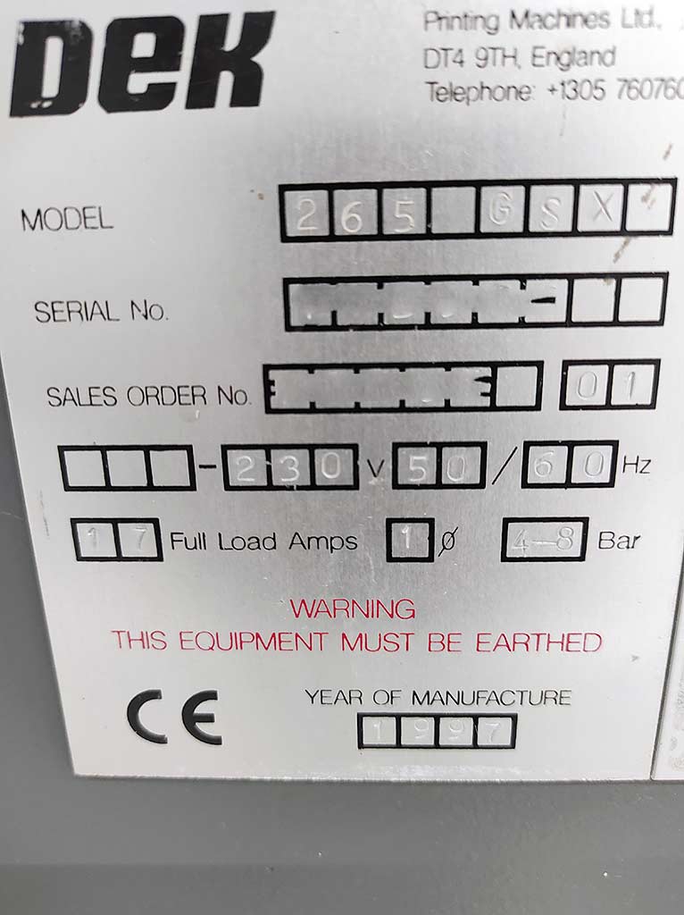 | Opis Two identical DEK stencil printers are available. Printing speed: 150mm/s, max. printing dimensions X/Y: 510mm/489mm, max. stencil dimensions X/Y: 510mm/508mm, min. stencil dimensions X/Y: 71mm/38mm, max. product thickness: 6mm. Machine dimensions X/Y/Z: approx. 1350mm/1400mm/1500mm, weight: approx. 800kg. Documentation available. An on-site inspection is possible.  |