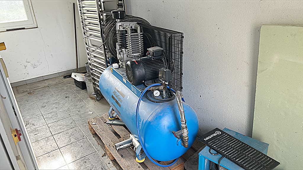 | Opis An Atlas Copco piston compressor is available. Motor power: 4kW, max. operating pressure: 11bar, intake capacity: approx. 633l/min, delivery rate at 7bar: approx. 412l/min, speed: 1000rpm, tank capacity: 270l. Machine dimensions: approx. 1500mm/500mm/1200mm, weight: approx. 125kg. Documentation available. On-site inspection possible. |