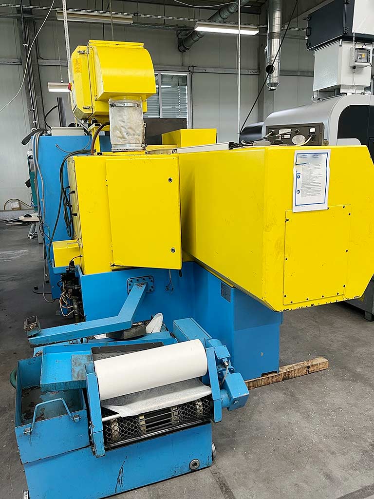 | Opis Center height: 150mm, max. grinding diameter: 300mm, distance between centers: 620mm, max. workpiece weight: 120kg, grinding head spindle swivel range: +45°/-15°, table adjustment: +/-8.5°, travel X/Z: 160mm/756mm, grinding wheel dimensions X/Y/Z: 400mm/63mm/127mm, grinding wheel speed: 45m/s, workpiece spindle speed: 700rpm. Machine dimensions X/Y/Z: approx. 3000mm/1850mm/1850mm, weight: approx. 3000kg. Including LTA extraction system and SBS wheel balancing device. The workpiece drive is disassembled and its completeness is unknown. Documentation available. An on-site inspection is possible. |