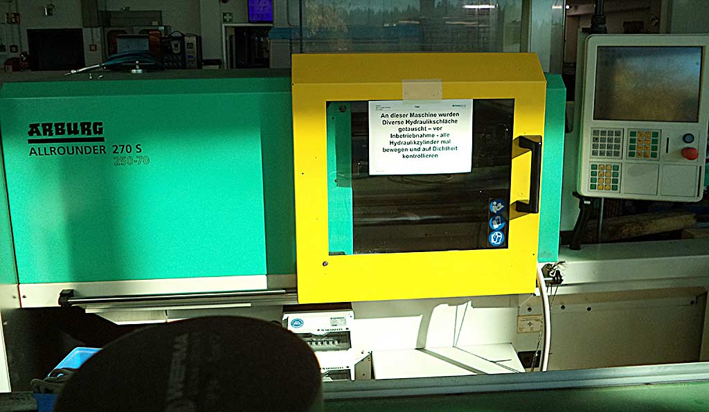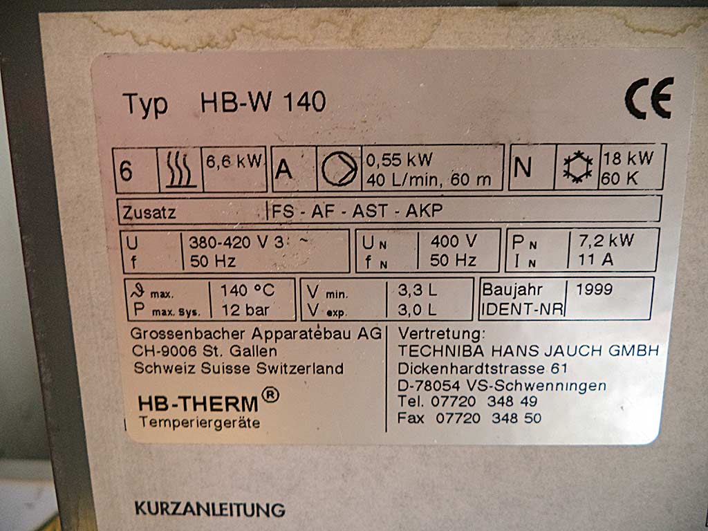 | Opis An old Arburg injection molding machine and five HB-Therm temperature control units are available. 1) Injection molding machine Arburg Allrounder 270S 250-70, clamping force: 250kN, tie bar distance: 270mm/270mm, platen dimensions X/Y: 380mm/380mm, mold height range: 200mm/550mm. 2) Temperature control unit HB-Therm HB-W 140, year of manufacture: 1999, max. temperature: 140°C, flow rate: 40l/min, max. operating pressure: 12bar, machine dimensions X/Y/Z: approx. 650mm/300mm/1000mm, weight: approx. 75kg. An on-site inspection is possible. |