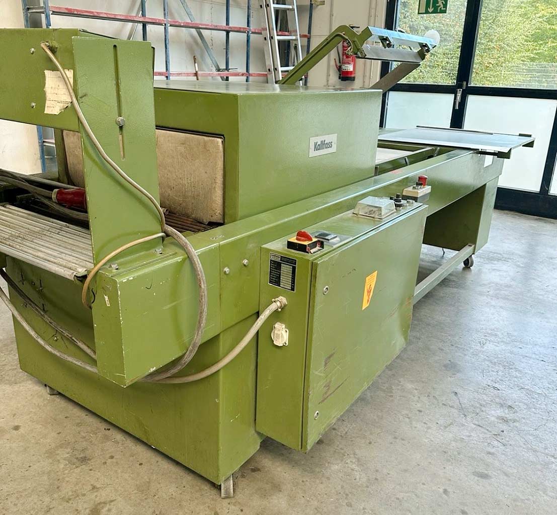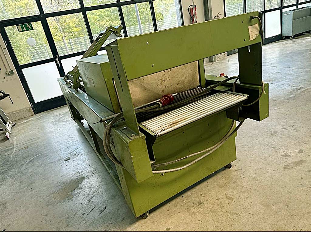 | Opis An old but functional Kallfass shrink-wrapping machine is available. Seal length: 600mm, max. passage height: 260mm, film thickness range: 12µm-80µm, max. belt speed: 12m/min, max. cycle rate: 20/min, sealing frame dimensions X/Y: 800mm/600mm, max. film roll width: 750mm, working height range: 870mm-970mm, tunnel width: 605mm, tunnel height: 400mm, max. film roll diameter: 300mm, max. film roll core diameter: 76mm. Machine dimensions X/Y/Z: approx. 3400mm/1300mm/1450mm, weight: approx. 750kg. The drive motor is taken out but included. An on-site inspection is possible. |