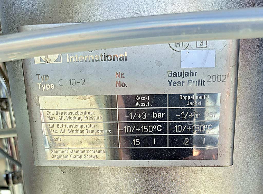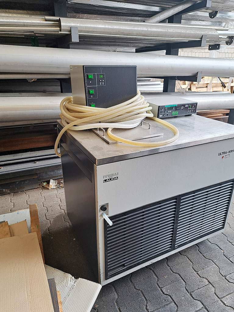 | Opis Various machines for laboratory use and pilot processes are available. 1) Bioreactor system B. Braun Biotech Biostat 72L/Biostat C-CDU, year of construction: 2001, useful volume: 72l, control: Biostat C-CDU 1137. 2) Forced-air drying cabinet Heraeus (Kendro) UT 20, useful volume: 210l, internal dimensions X/Y/Z: approx. 610mm/510mm/680mm, max. temperature: 250°C, machine dimensions X/Y/Z: approx. 770mm/940mm/800mm. 3) Ultra cryostat Lauda K 75 with a cooling thermostat Lauda RUK 40S, bath volume: approx. 30l, min. temperature: -90°C. 4) Centrifuge CEPA 8L G, year of construction: 1985, speed: 17000rpm, drum diameter: 125mm, max. filling capacity: 10kg, power: 2.2kW. Documentation available. An on-site inspection is possible. Sale of individual units possible. |