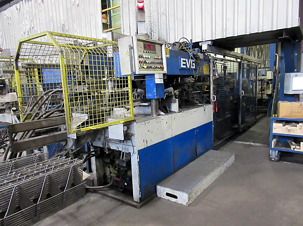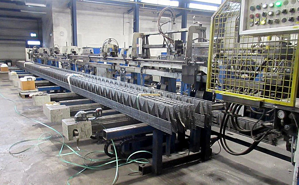 | Opis Offered is a lattice girder/girder welding system year 1992 incl. corresponding stacker SVH 195 year 1992. Girder height: 90mm-250mm, upper chord: 5mm-12mm smooth/ribbed, diagonal: 4mm-7mm smooth, lower chord: 4mm-10mm smooth/ribbed, girder length max.: 14000mm, fixed lengths, cutting grid: 100mm/200mm. 5 coil payoff plates, stacker SVH 195, stacking height max.: 500mm. Inspection is possible by arrangement. |