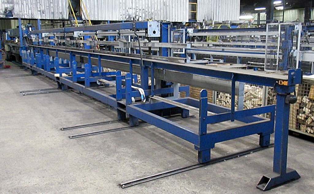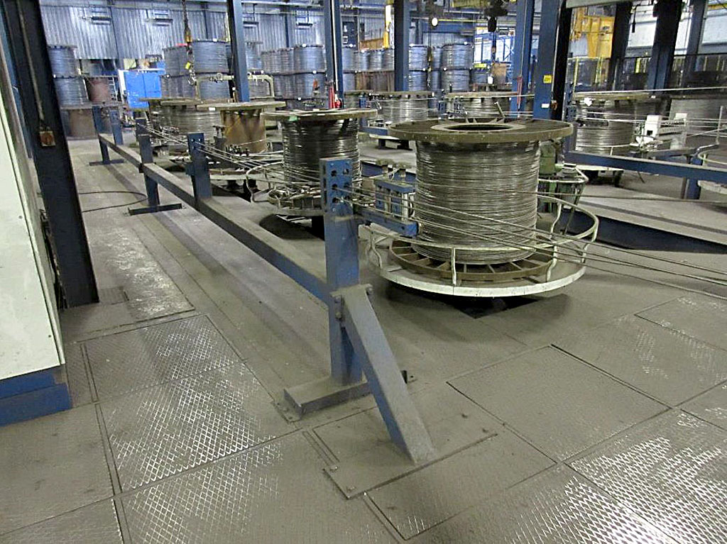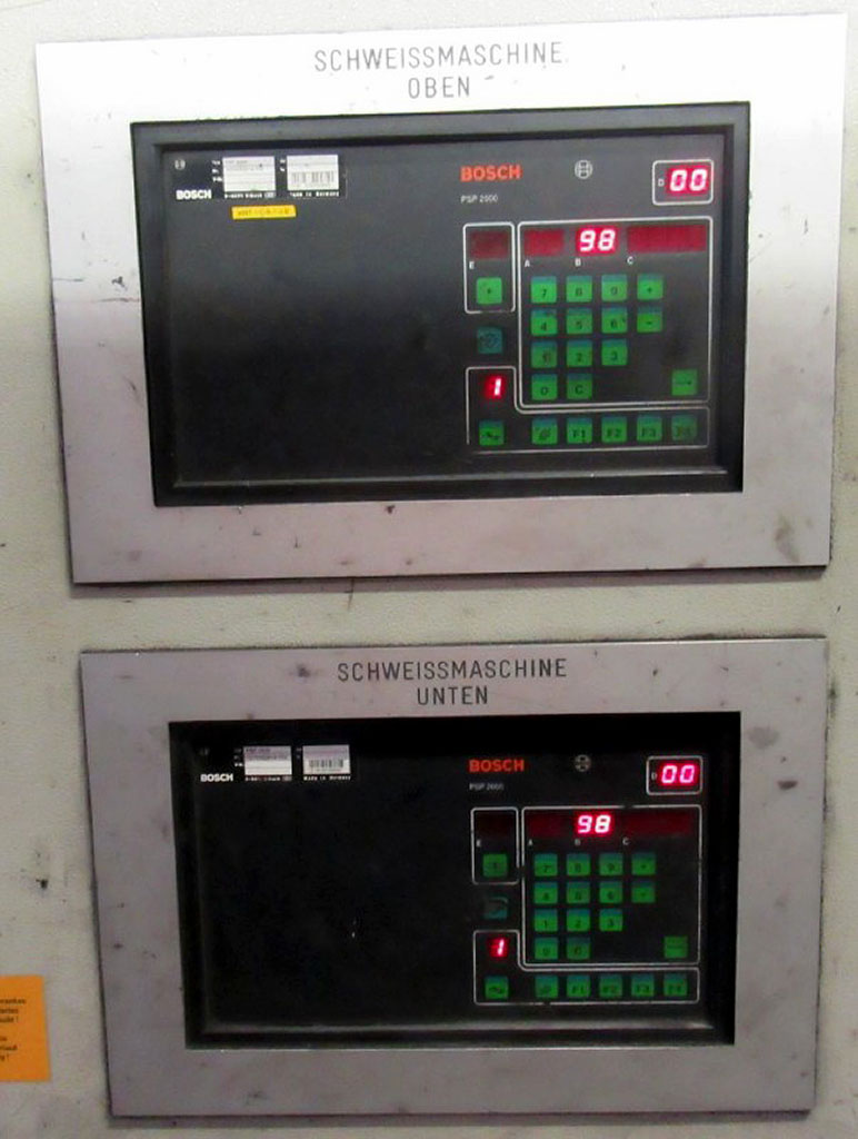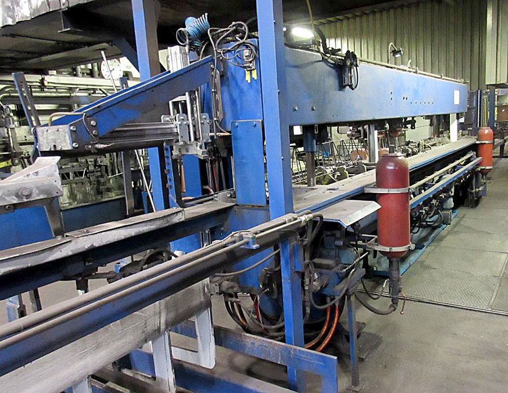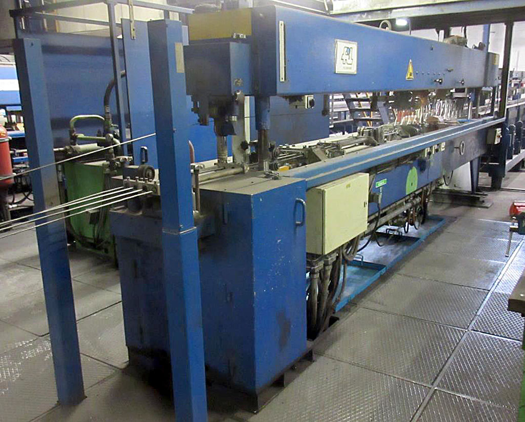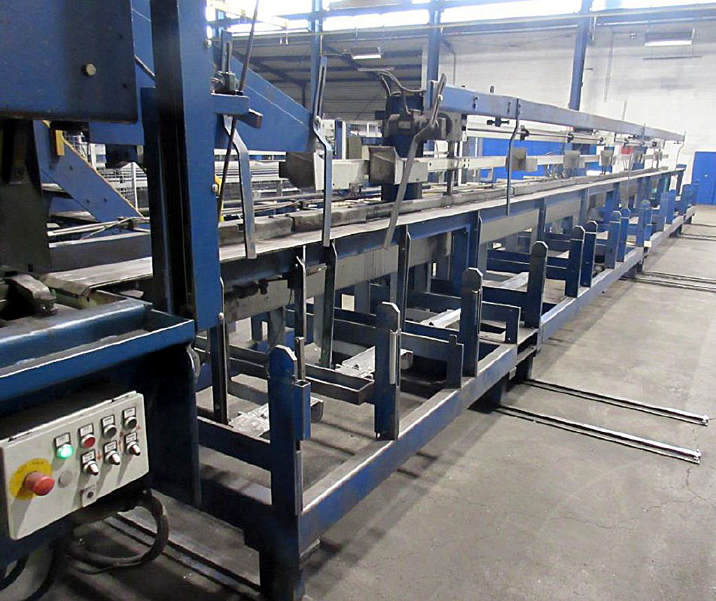 | Opis Offered is a lattice girder/girder production machine year approx.: 1994. Girder height: 80mm-300mm, upper chord: 5mm smooth/ribbed, diagonal: 7mm smooth, lower chord: 5mm smooth/ribbed, girder length max.: 14000mm, cutting grid: 200mm, spool payoff tables: 5 pieces. Inspection is possible by arrangement. |