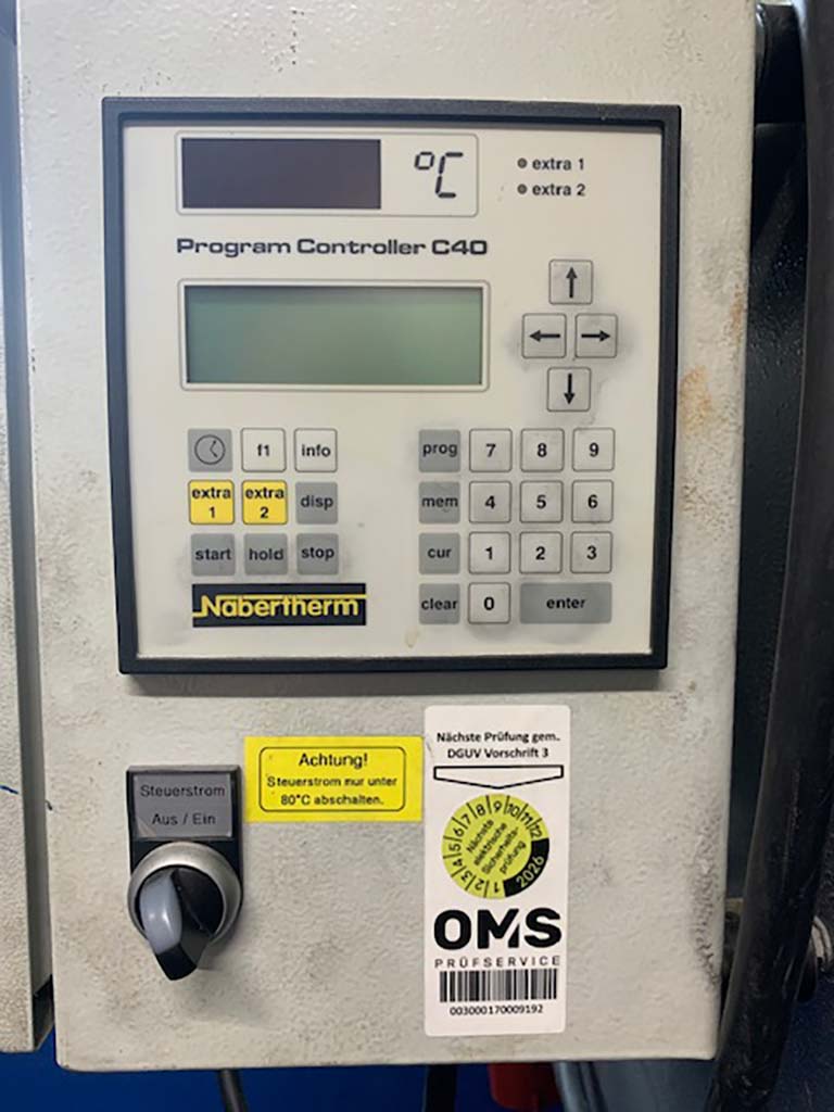 | Opis Max. operating temperature: 450°C, number of fans: 1, fan power: 0.75kW, power loss: 8kW, voltage: 400V, phases: 3, frequency: 50Hz, power supply: 26/26/32A, connected load: 18kW, control panel: Program Controller C40. With full documentation. The oven is in good condition, has been inspected regularly, and was in operation until recently. An on-site inspection is possible. |