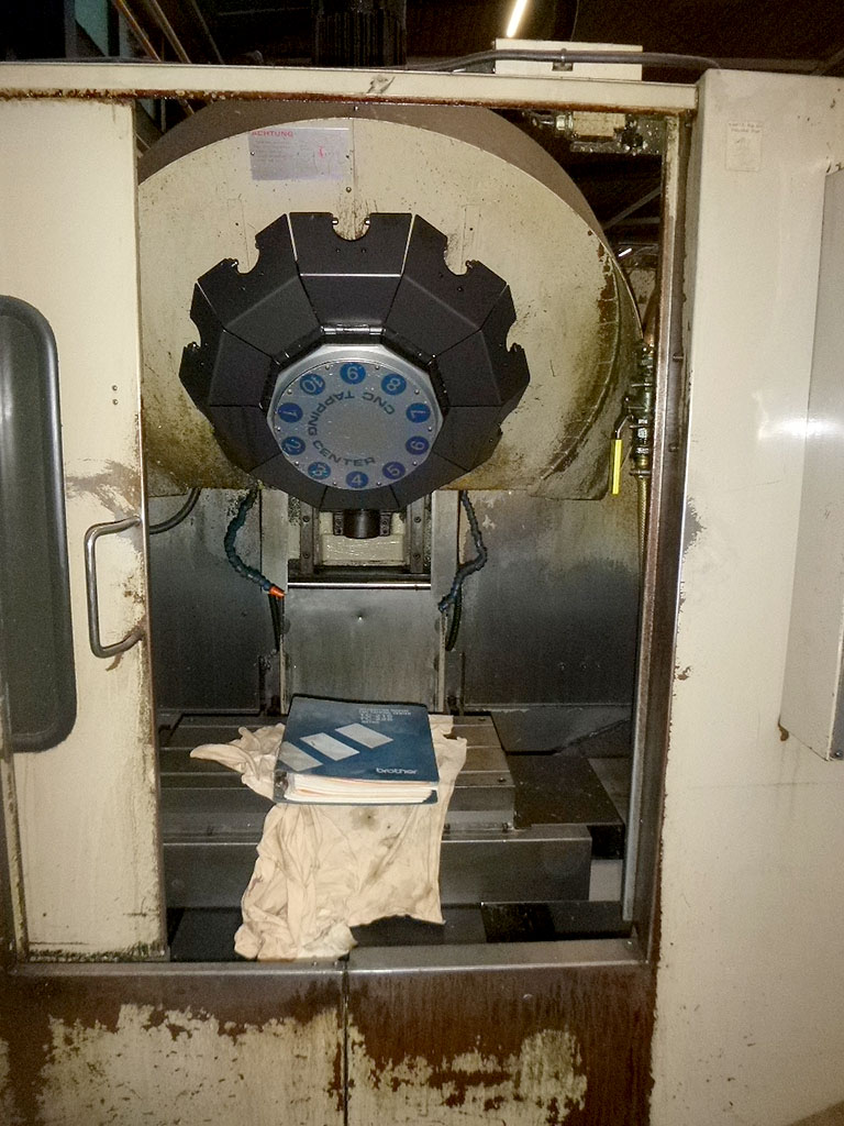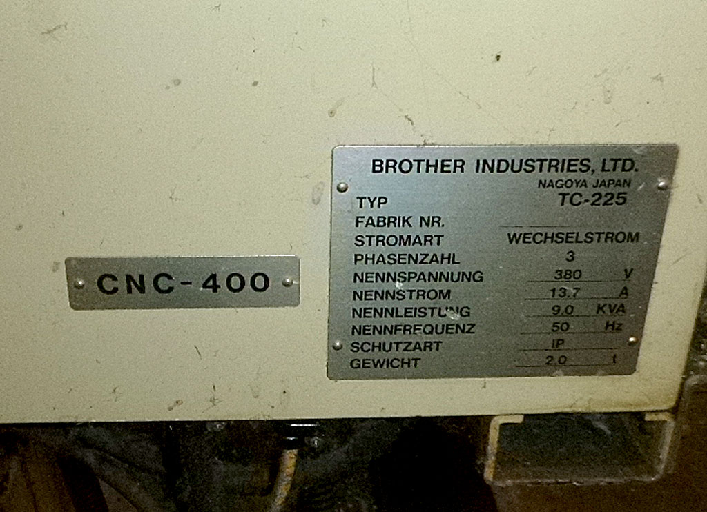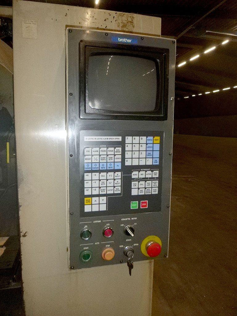 | Opis A machining center with 10-station tool changer is offered. Table clamping surface X/Y: 600mm/300mm, travel X/Y/Z: approx. 420mm/300mm/250mm, spindle speed: 6000rpm. Tool holder: BT30. Control: Brother CNC-400, machine weight: approx. 2000kg, including manual. Inspection possible by appointment. |