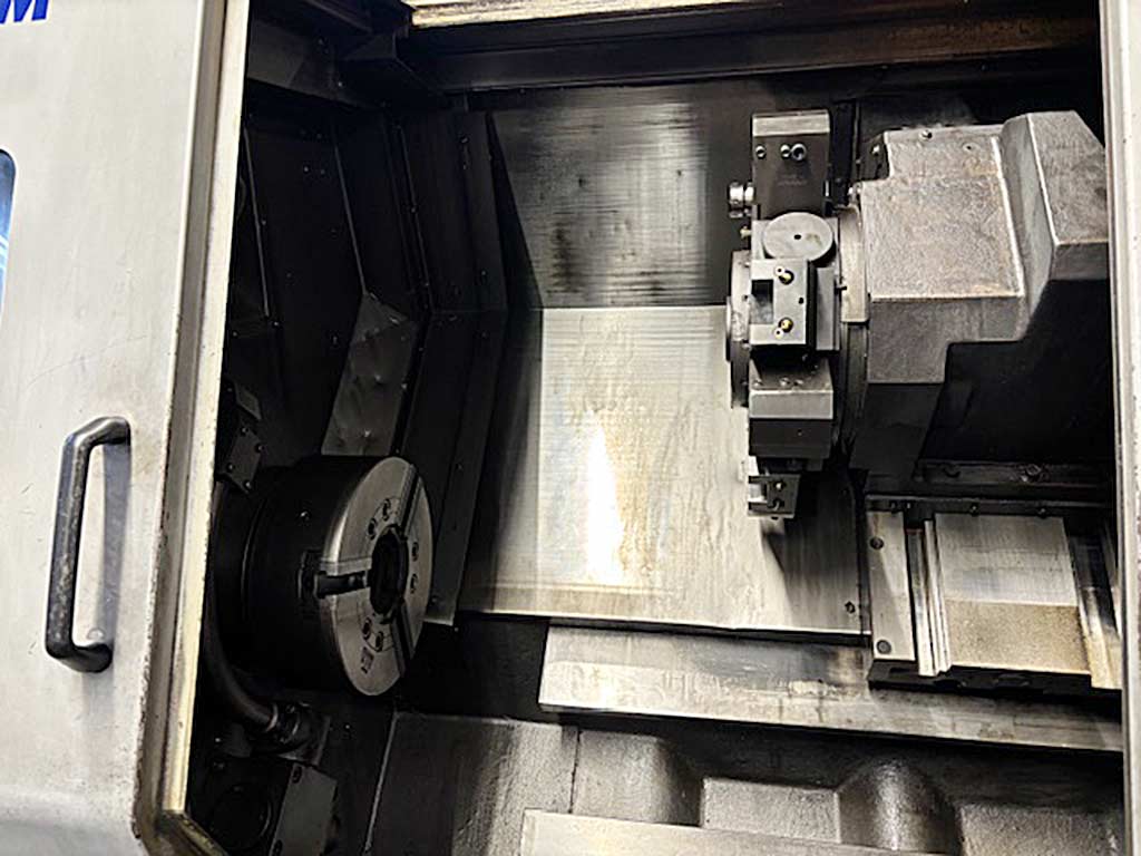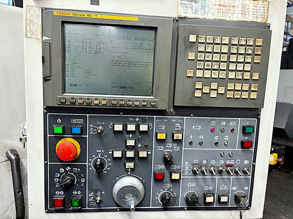 | Opis Swing diameter over bed/cross slide: 590mm/450mm, max. turning diameter: 355mm, max. turning length: 1233mm, travel X/Z: 250mm/1330mm, rapid traverse X/Z: 20m/min/24m/min, positioning accuracy X/Z: +/-0.005mm, repeatability X/Z: +/-0.002mm, speed: 3500rpm, spindle bore: 90mm, bar capacity: 76mm, tool stations: 12, machine dimensions X/Y/Z: approx. 4100mm/1950mm/1850mm, weight: approx. 6700kg, control: Fanuc 18i-T. Documentation available. On-site inspection is possible. |