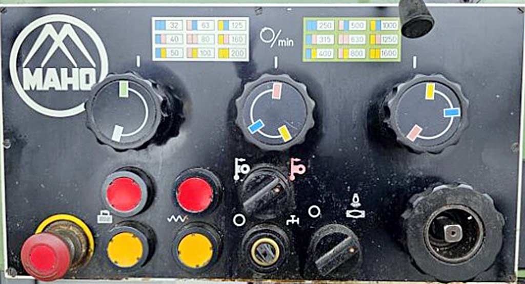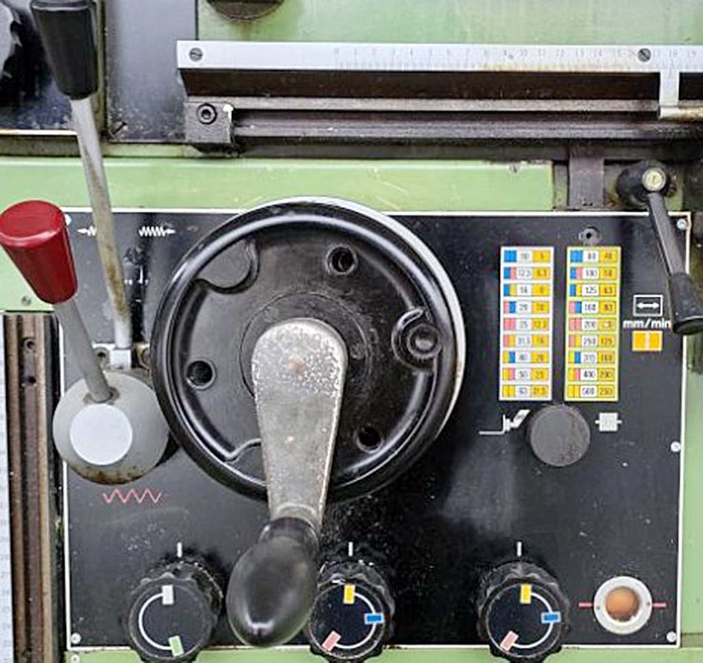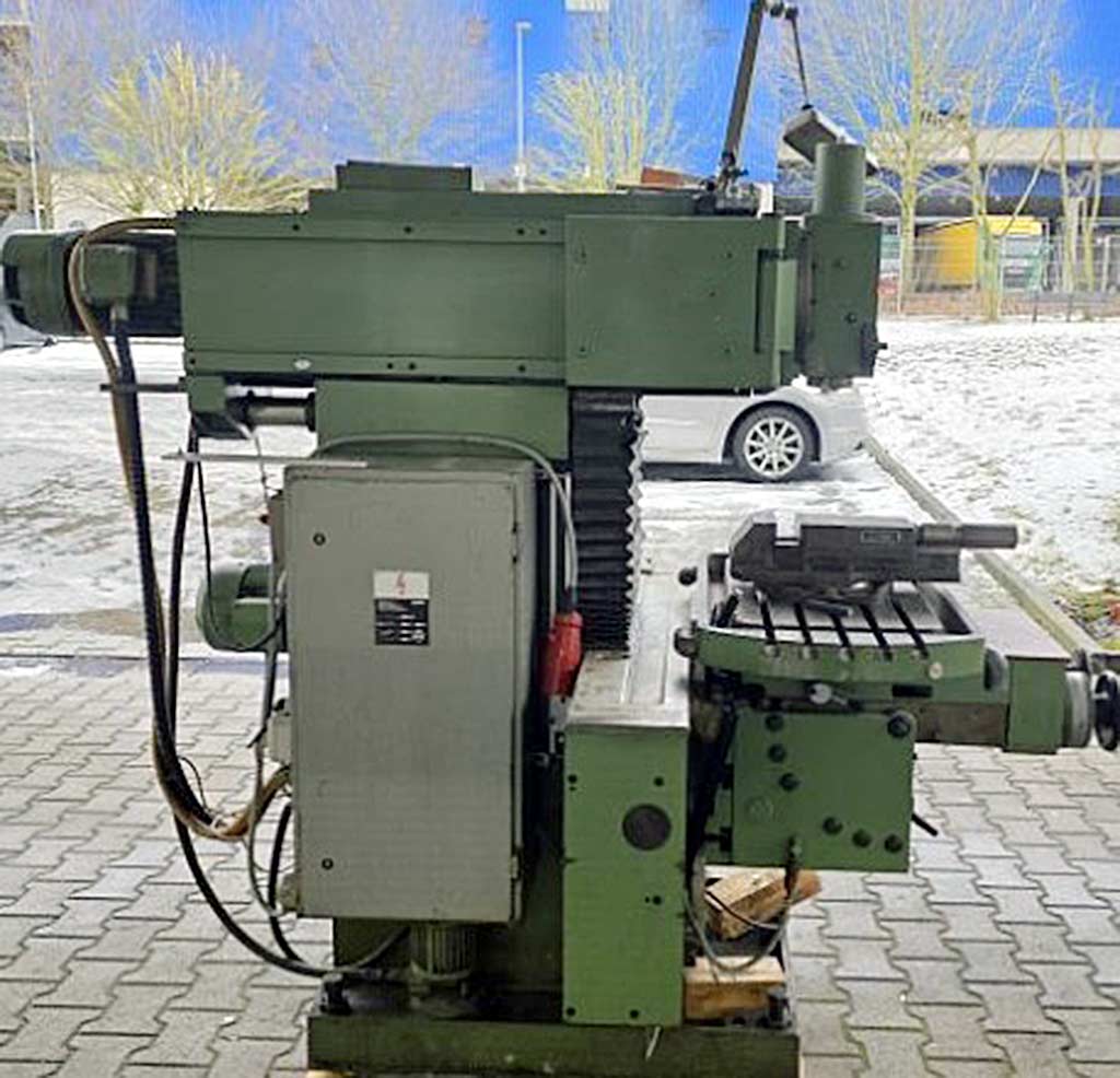 | Opis Spindle-to-table distance min./max.: 81mm/481mm, counter support spindle center distance: 195mm, spindle head swivel: 360°, milling spindle diameter: 70mm, spindle adjustment: 100mm, headstock adjustment: 300mm, table dimensions X/Y: 480mm/820mm, travel X/Y/Z: 500mm/200mm/400mm, max. workpiece length: 400mm, spindle speed: 1600rpm, feed X/Y: 500mm/min, feed Z: 250mm/min, spindle head swivel: +/-30°, machine dimensions X/Y/Z: approx. 1600mm/2550mm/1700mm, weight: approx. 2300kg. The machine was electrically tested at the end of 2025 and a defect of the emergency stop switch was discovered. Documentation available. On-site inspection is possible. |