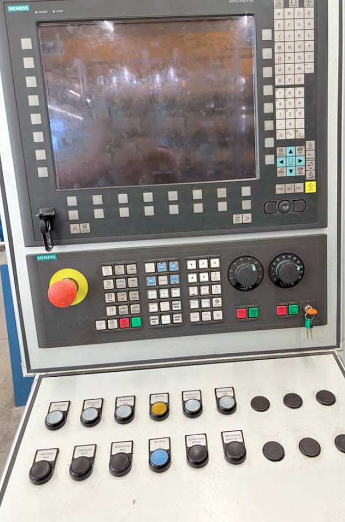 | Opis Workpiece diameter with/without steady rest: 400mm/250mm, max. workpiece length: 750mm, spindle head load: 400kg, max. internal grinding diameter: 350mm, max. grinding depth: 500mm, travel X/Z: 300mm/1000mm, max. traverse speed: 15m/min, control system: Siemens Sinumerik. Documentation available. On-site inspection is possible. |